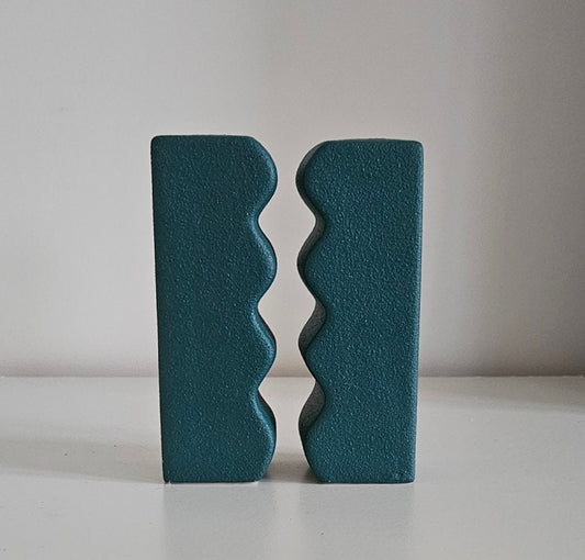 Pair Of Green Contemporary Wavy Candlestick Holders