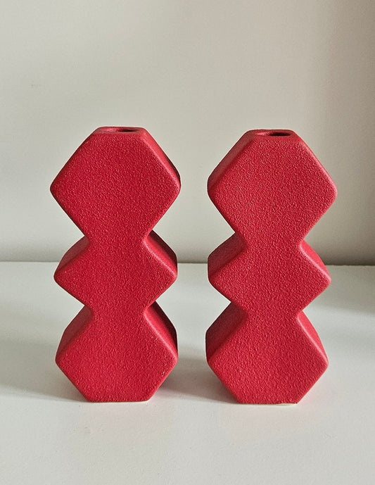 Pair Of Red Contemporary Zig Zag Candlestick Holders