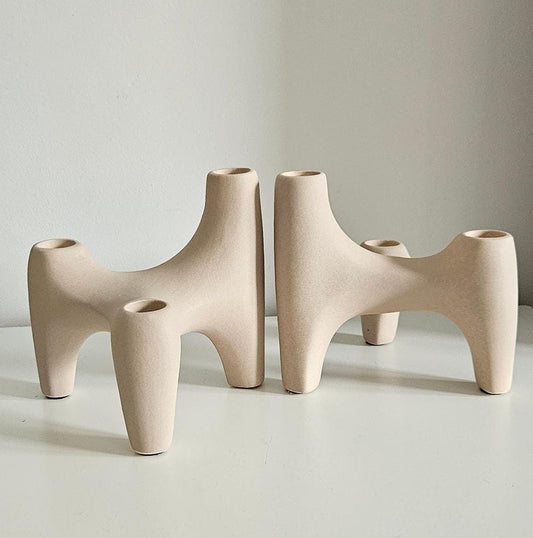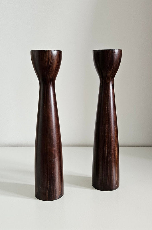 Retro Vintage Weighted Wooden Effect Candlestick Holders