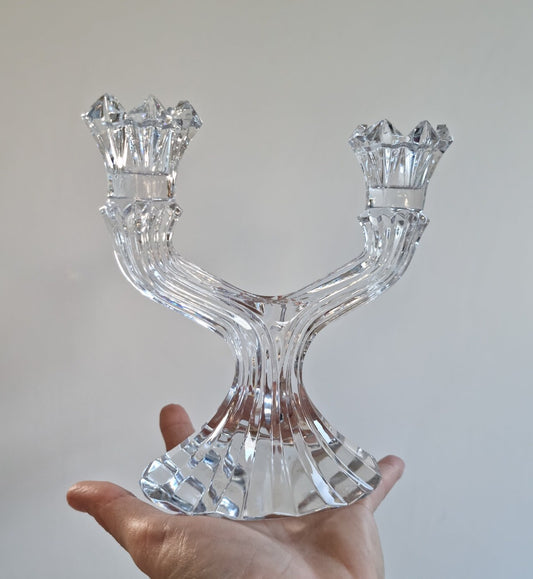 Vintage Large Bohemia Heavy Lead Crystal Glass Candleholder