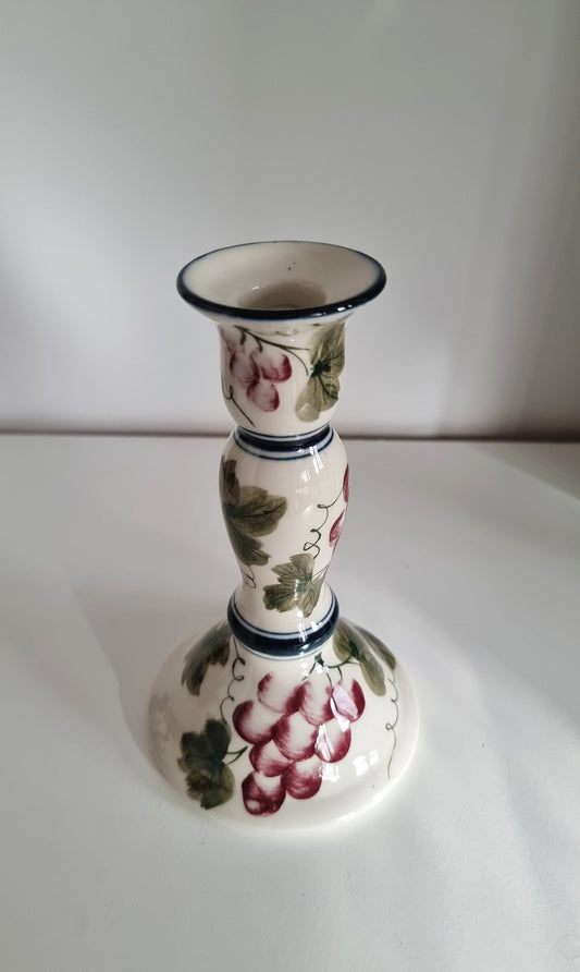 Vintage Hand Painted Ceramic Candlestick With Grape Design