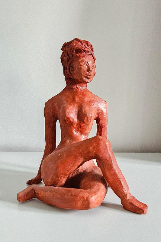 Vintage Sitting Nude Woman Clay Sculpture Figurine - Please Read Description
