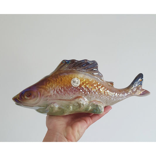 H. Bequet Belgium Quaregnon Lustreware Pottery Fish, Model 705
