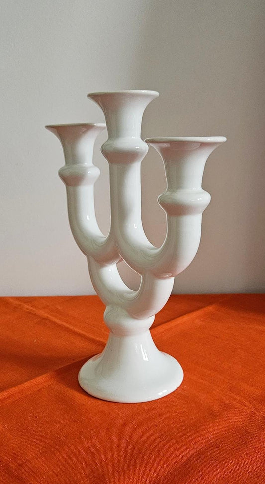 Vintage White Ceramic Three-Arm Candelabra