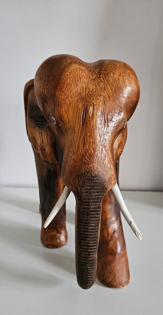 Vintage Solid Wood Hand Carved Large Elephant Ornament
