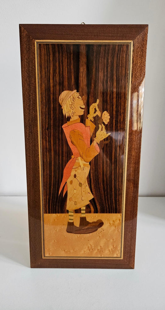 Vintage Italian Sorrento Marquetry Clown Wall Plaques