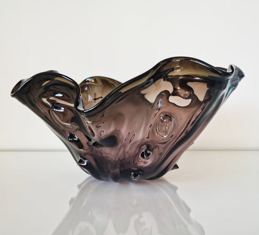 Mid-Century Wavy Asymetrical Purple & Brown Art Glass Bowl