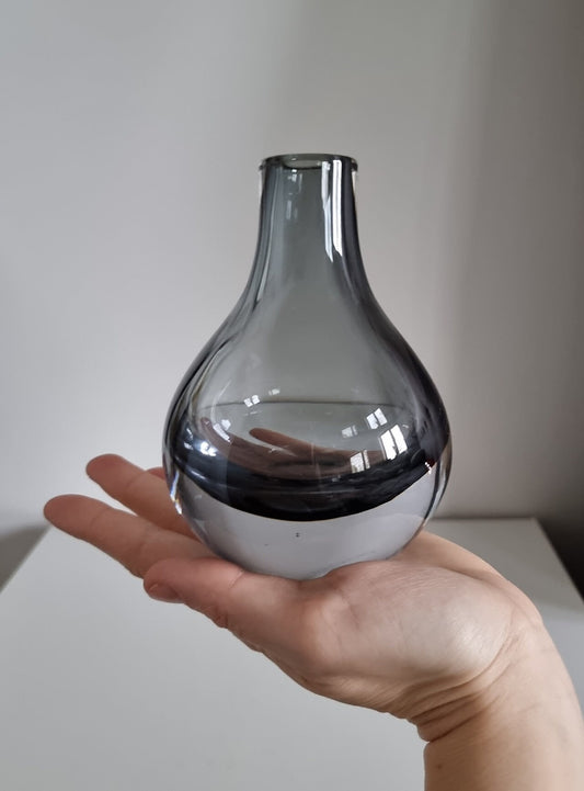 Nordic Style Glass Bud Vase | Smoked Grey Glass | Drop Shape Vase | Thick Glass Display Vase