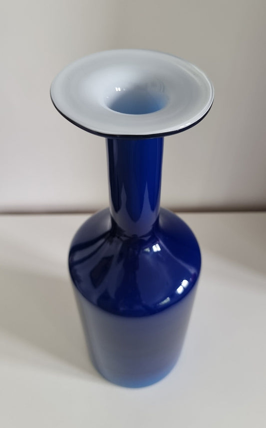 Mid-Century Modern Cobalt Blue Cased Glass Bottle Shaped Vase