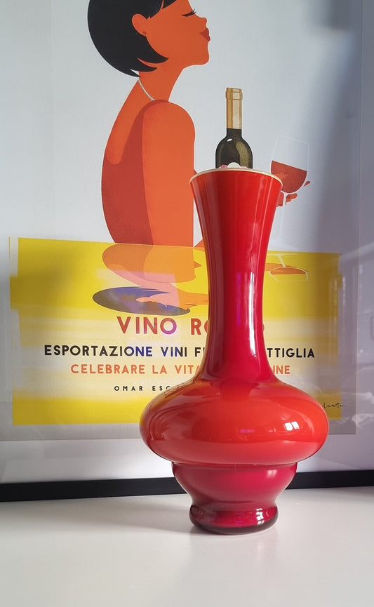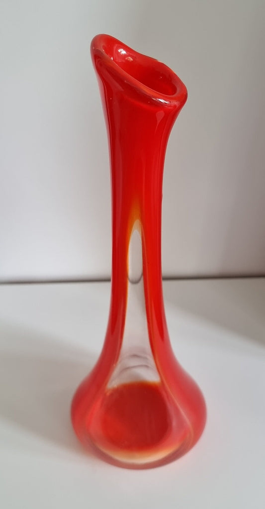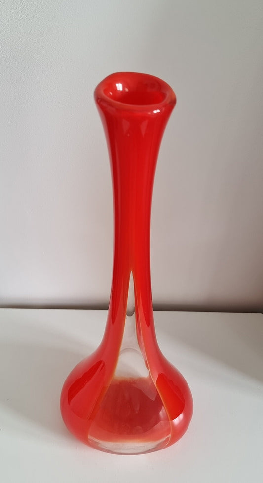 Mid-Century Modern Red Hooped Cased Glass Vase