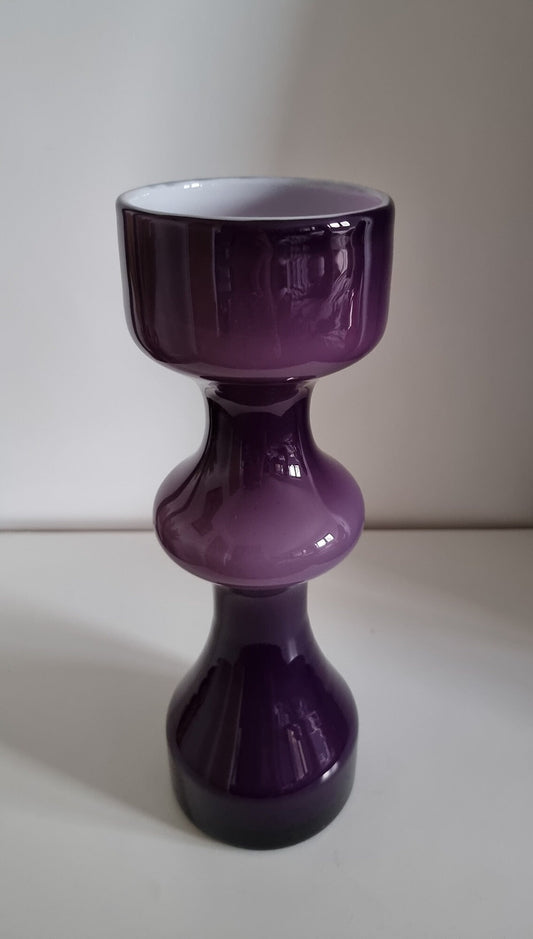 Mid-Century Modern Purple Hooped Cased Glass Vase