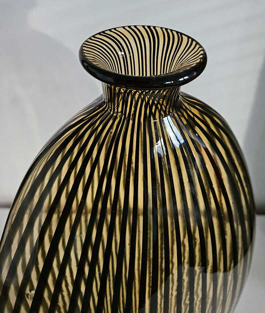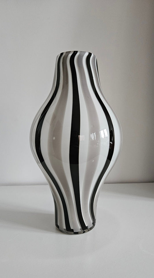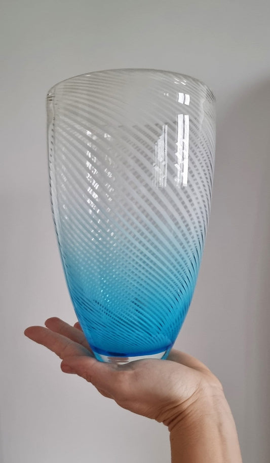 Mid-Century Murano Blue & White Striped Italian Art Glass Vase