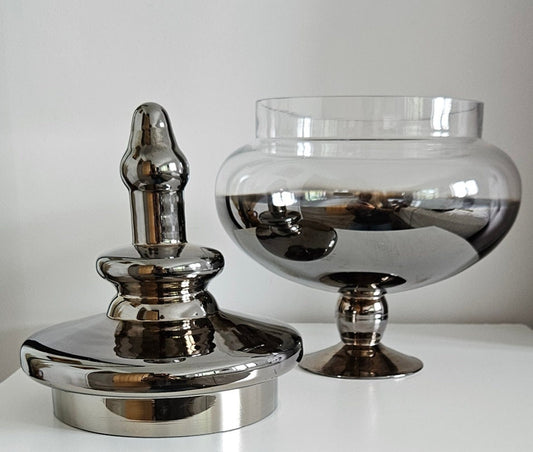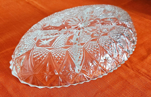 Mid Century French Lead Crystal Glass Divided Snack Server, Serving Plate/Dish