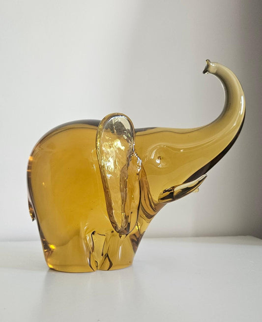 Large & Heavy Amber Art Glass Elephant - Small Damage To Tail, Heavy Over 4 Kg