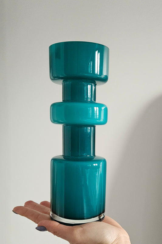 Retro Design Turquoise Hooped Cased Glass Vase