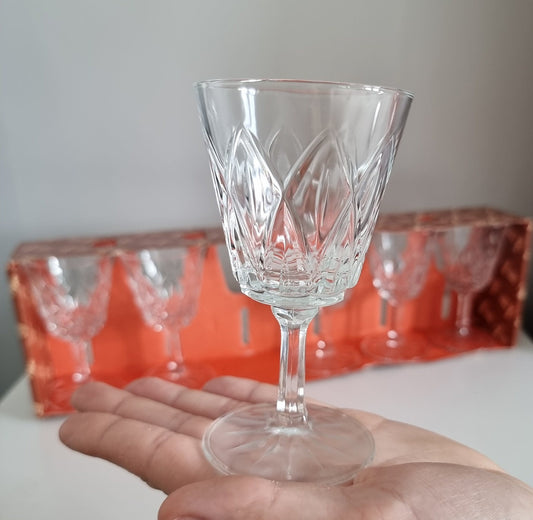 Vintage Set Of Six VMC Reims France Cut Crystal Aperitif Liqueur Sherry Port Glasses
