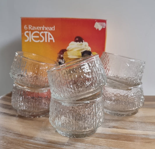 Vintage Ravenhead Siesta Glass Dessert Bowls/Sundae Dishes