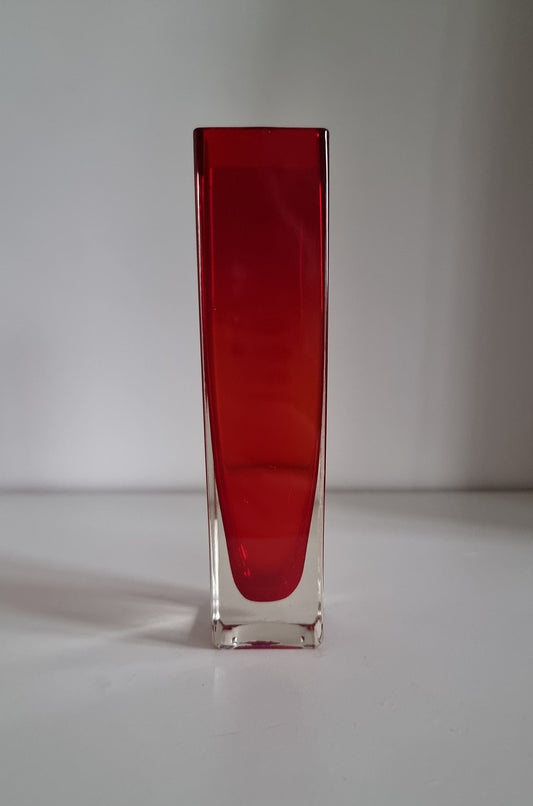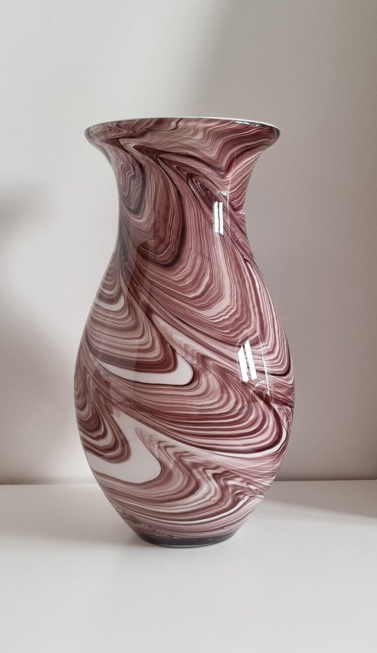 Vintage Maroon & White Wave/Marble Effect Glass Art Vase