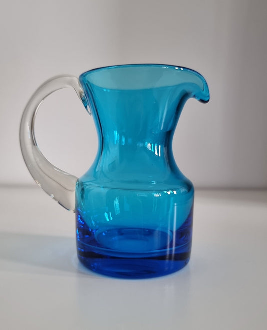 Vintage Krosno Poland Small Blue Glass Jug, Hand Blown Glass Cream Jug