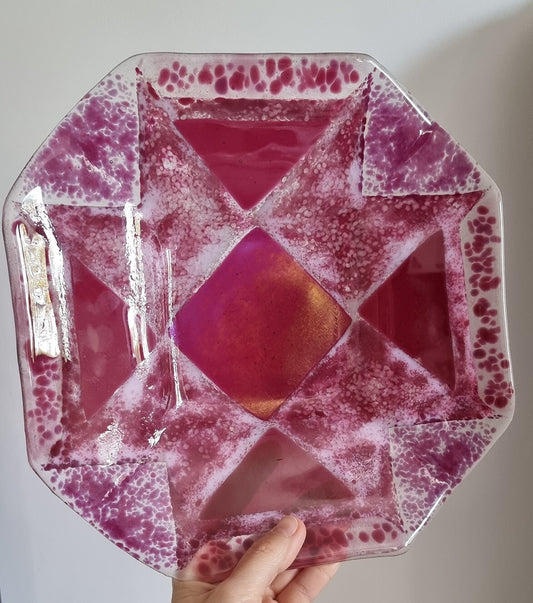 Vintage Octagonal Abstract Design Glass Bowl/Serving Plate