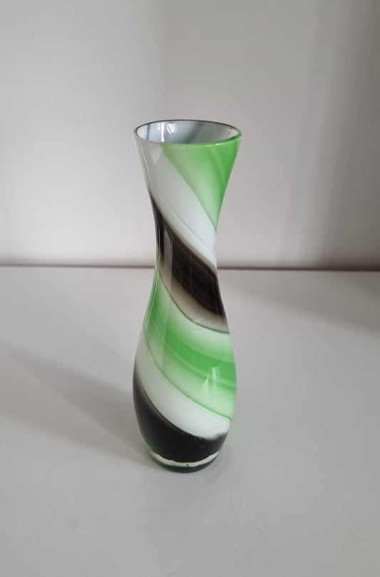 Vintage Japanese White/Green/Brown Swirl Design Glass Vase