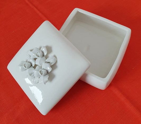 Vintage Porcelain Lidded Trinket Box With Roses