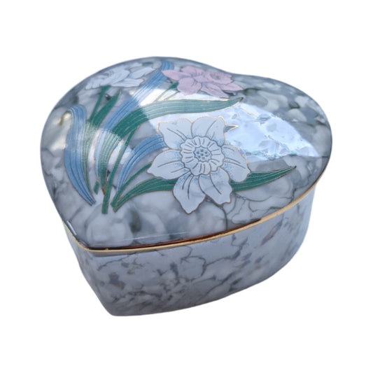 Vintage Japanese Heart Shaped Porcelain Trinket/Jewelry Box In Floral Design