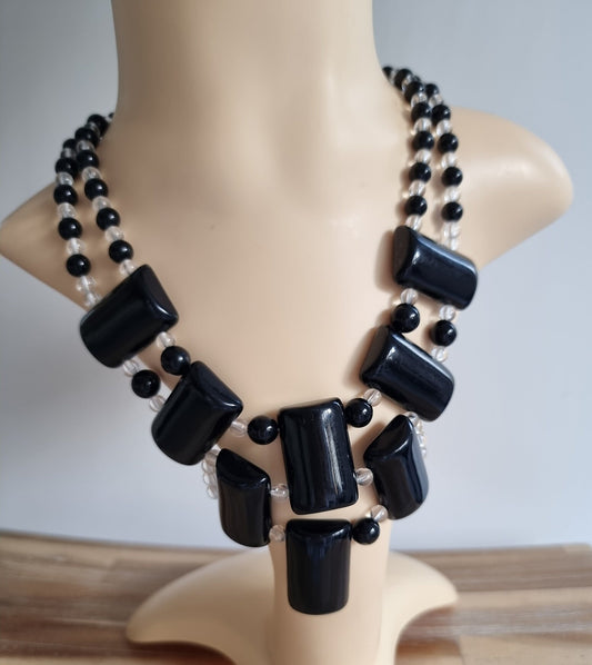 Retro Black/Clear Plastic Beads Statement Necklace