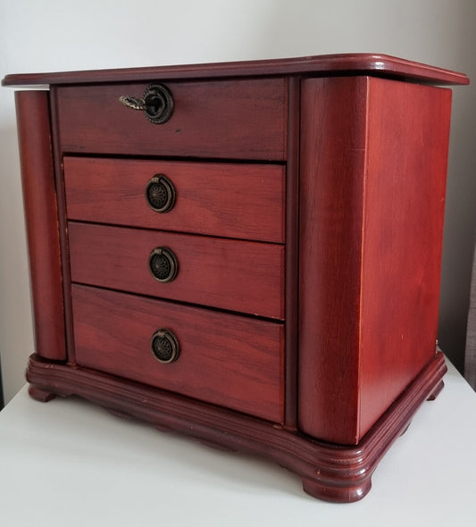 Vintage Large Wooden Locking Jewellery Box/Chest