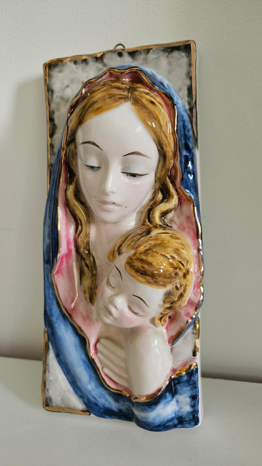 Vintage Italian Virgin Mary & Baby Jesus Wall Plaque