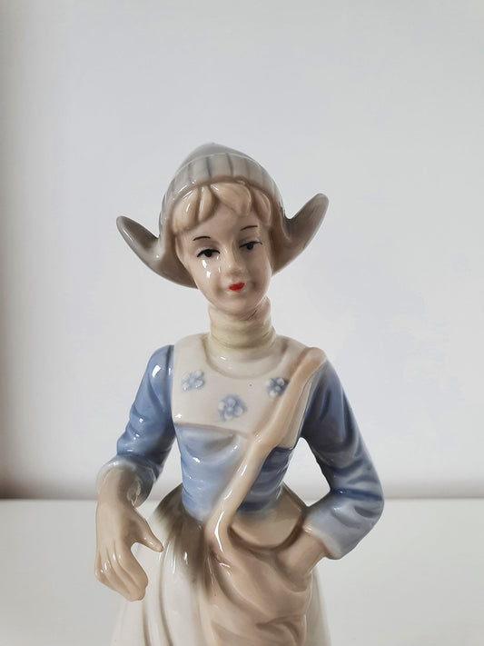 Vintage Woolbro Porcelain Girl Feeding Goose/Duck Figurine