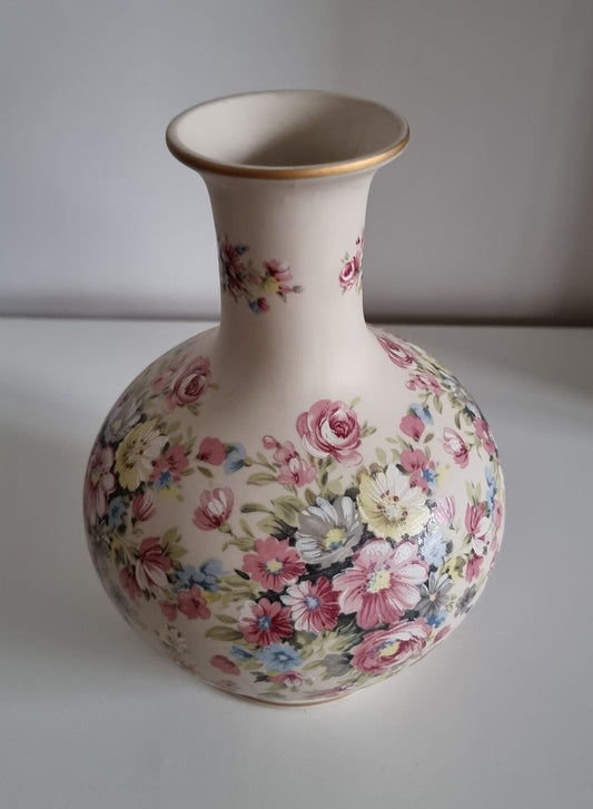 Vintage Porcelanas Ibis Aveiro Portuguese Hand Painted Porcelain Vase In Floral Design