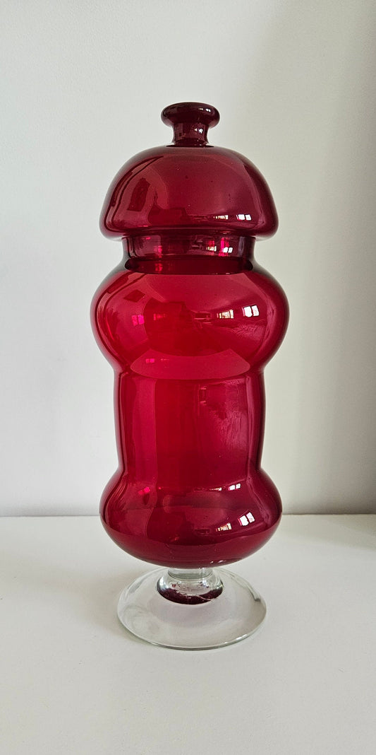 Vintage Italian Empoli Ruby Red Glass Apothecary Style Jar