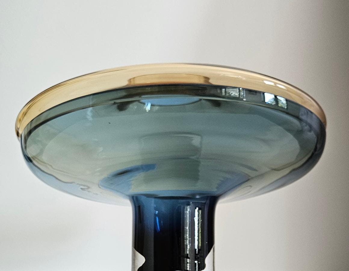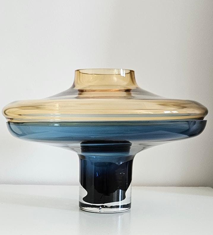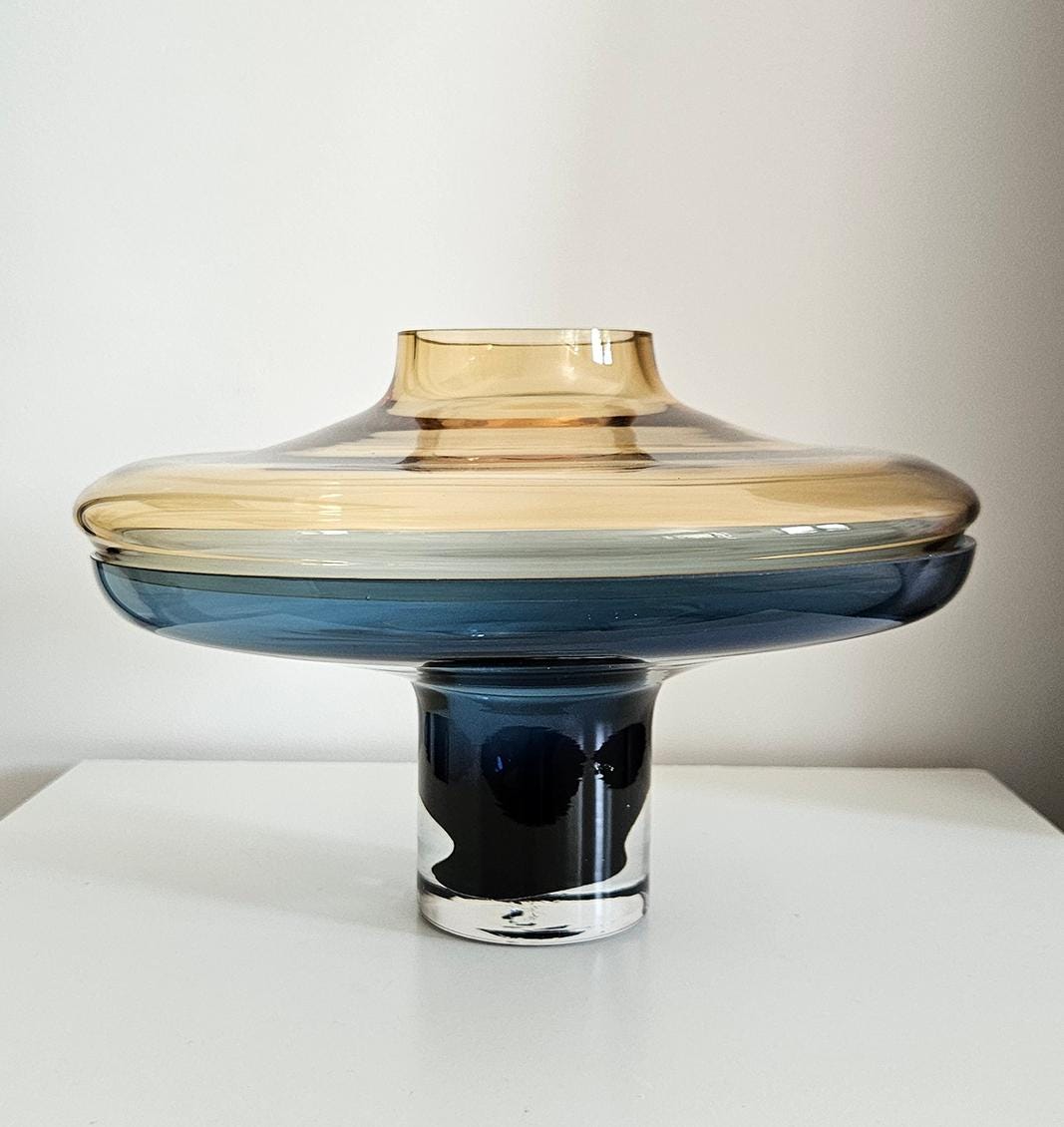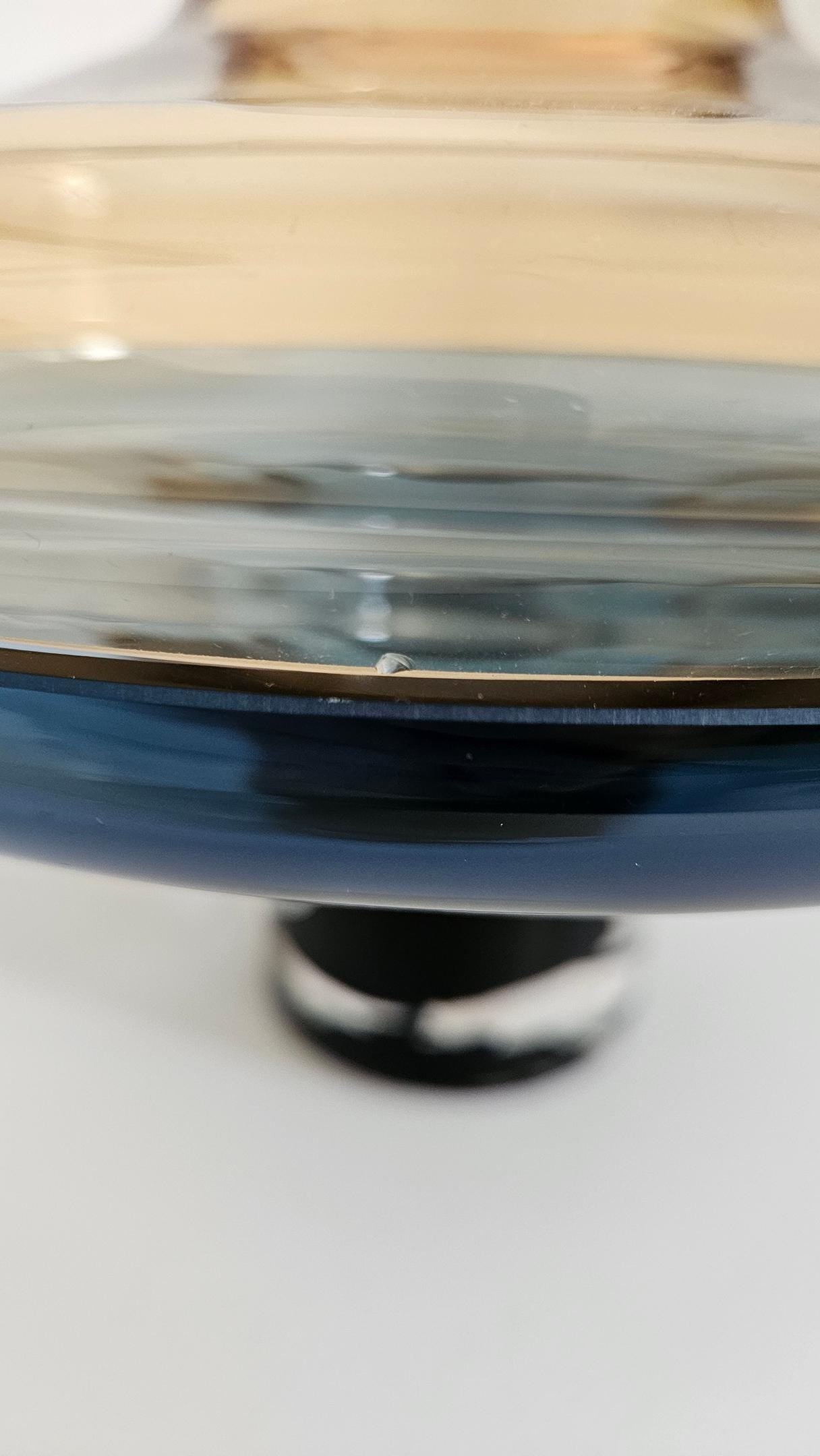 Designer Global Views Large 2 Piece Amber Over Cobalt Blue Lidded Vase