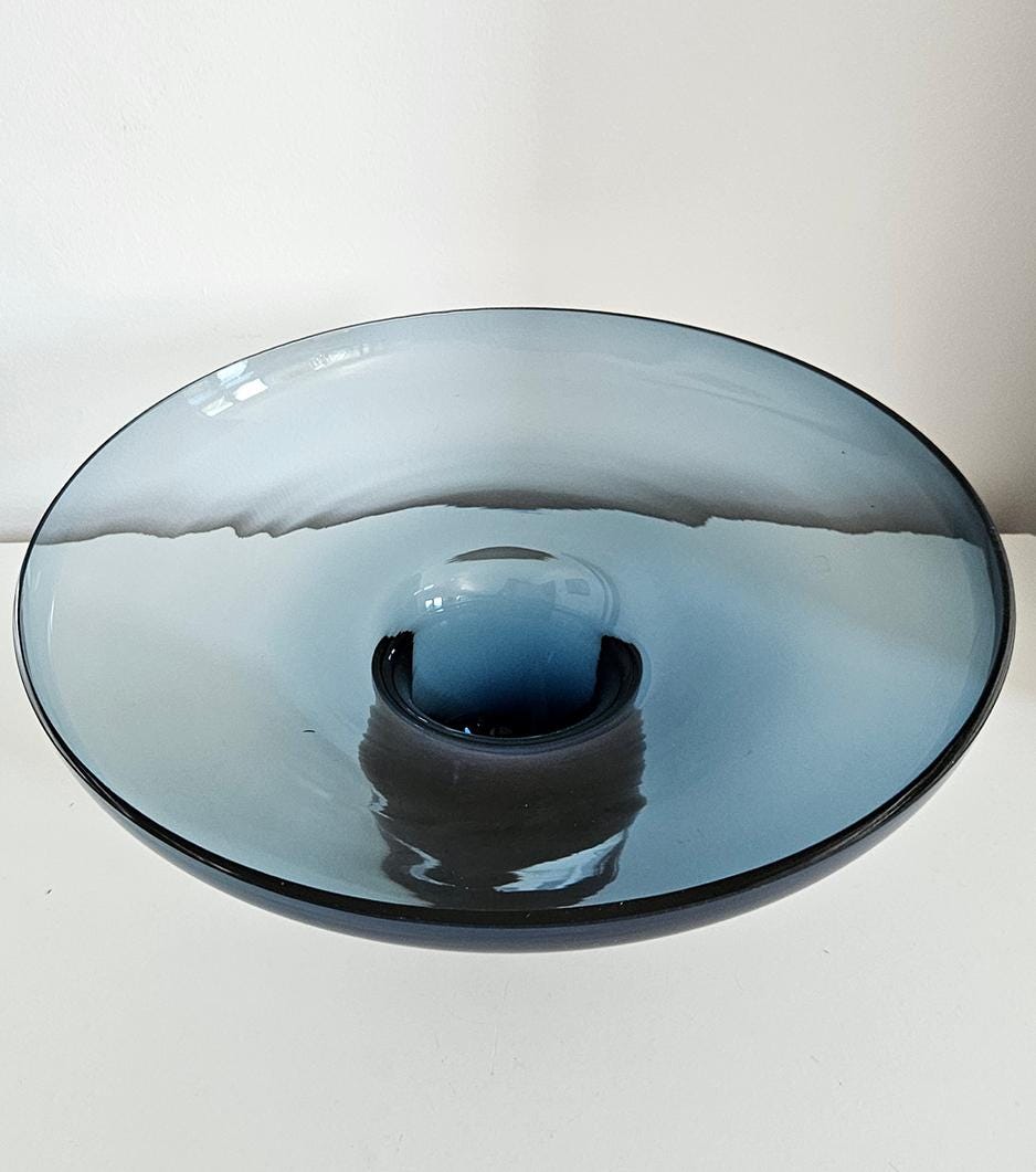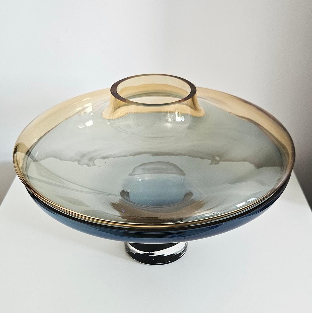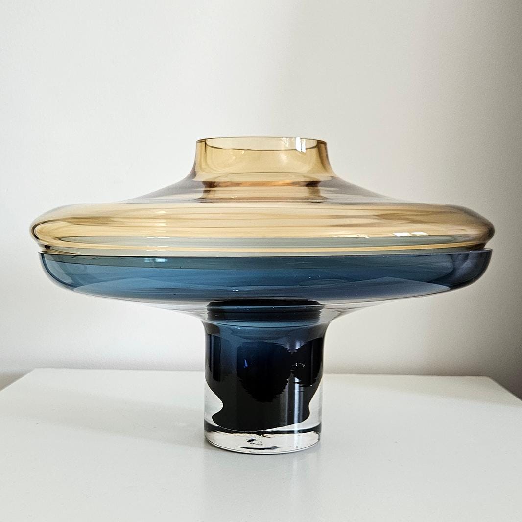 Designer Global Views Large 2 Piece Amber Over Cobalt Blue Lidded Vase