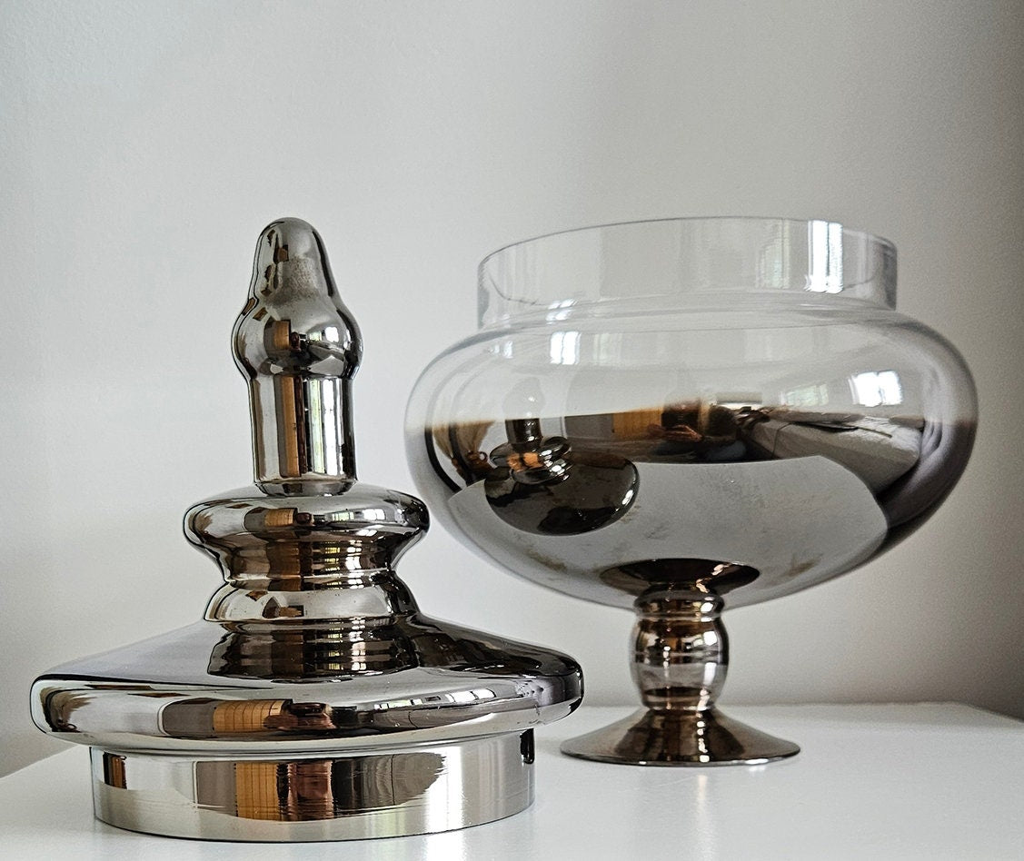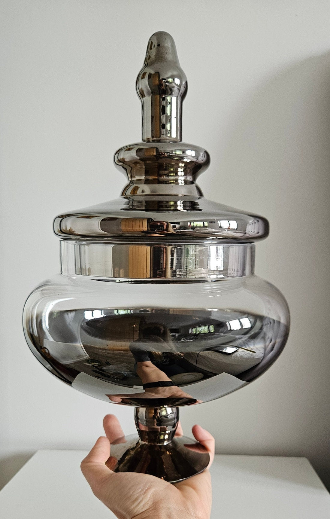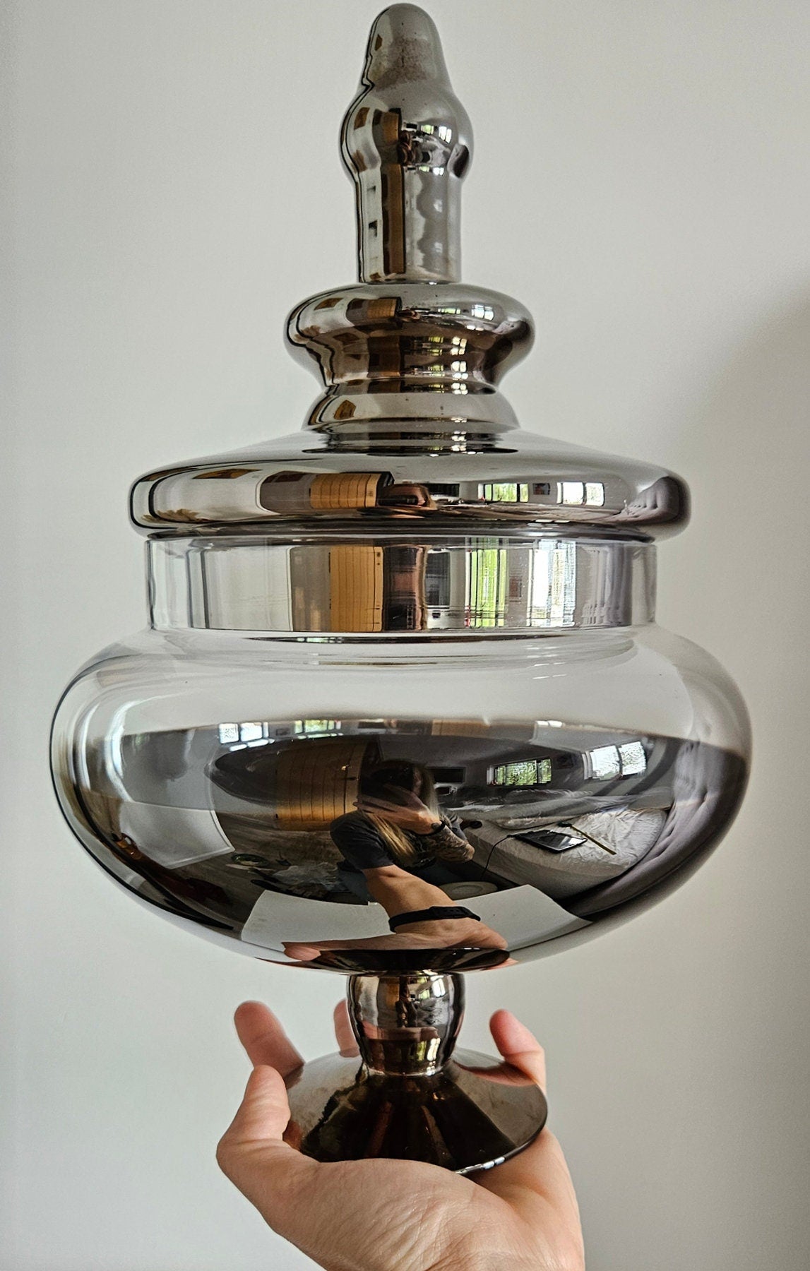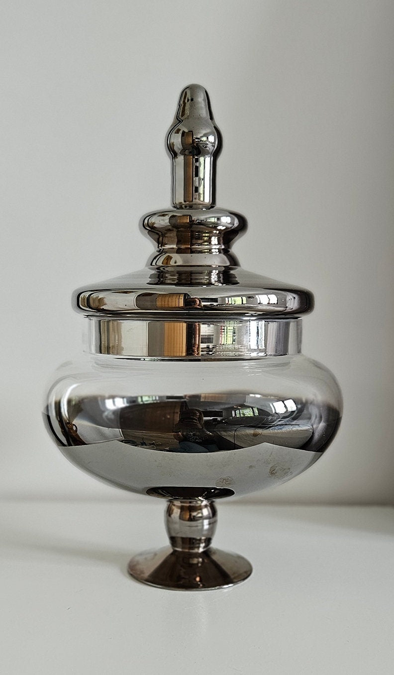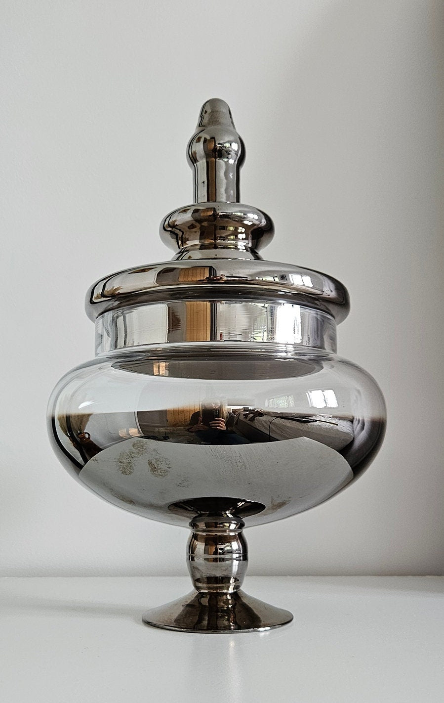 Enhance your living space with timeless elegance and practicality with this exquisite large apothecary style footed jar with lid. Crafted to perfection, this jar exudes sophistication and charm, making it the perfect addition to any home decor. Whether you use it to store your favorite treats, display decorative items, or simply as a standalone statement piece, its versatile design lends itself to endless possibilities.