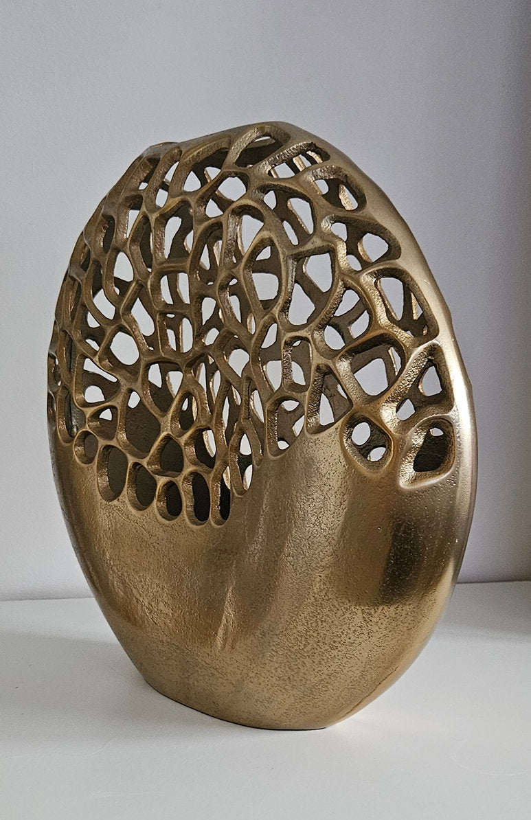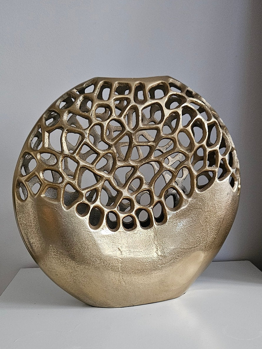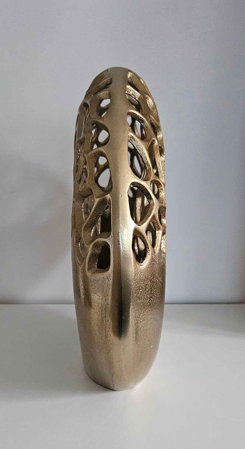 Whether displayed on its own or filled with artifical flowers, this metal vase effortlessly merges form and function. Elevate your decor with this statement piece, where craftsmanship meets aesthetic innovation.