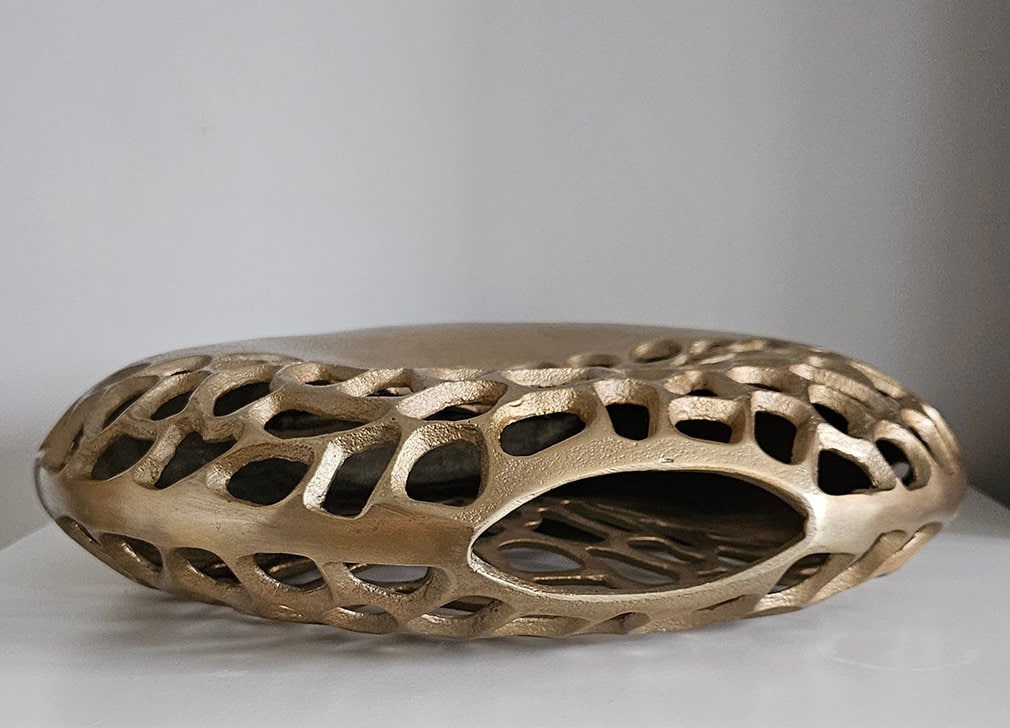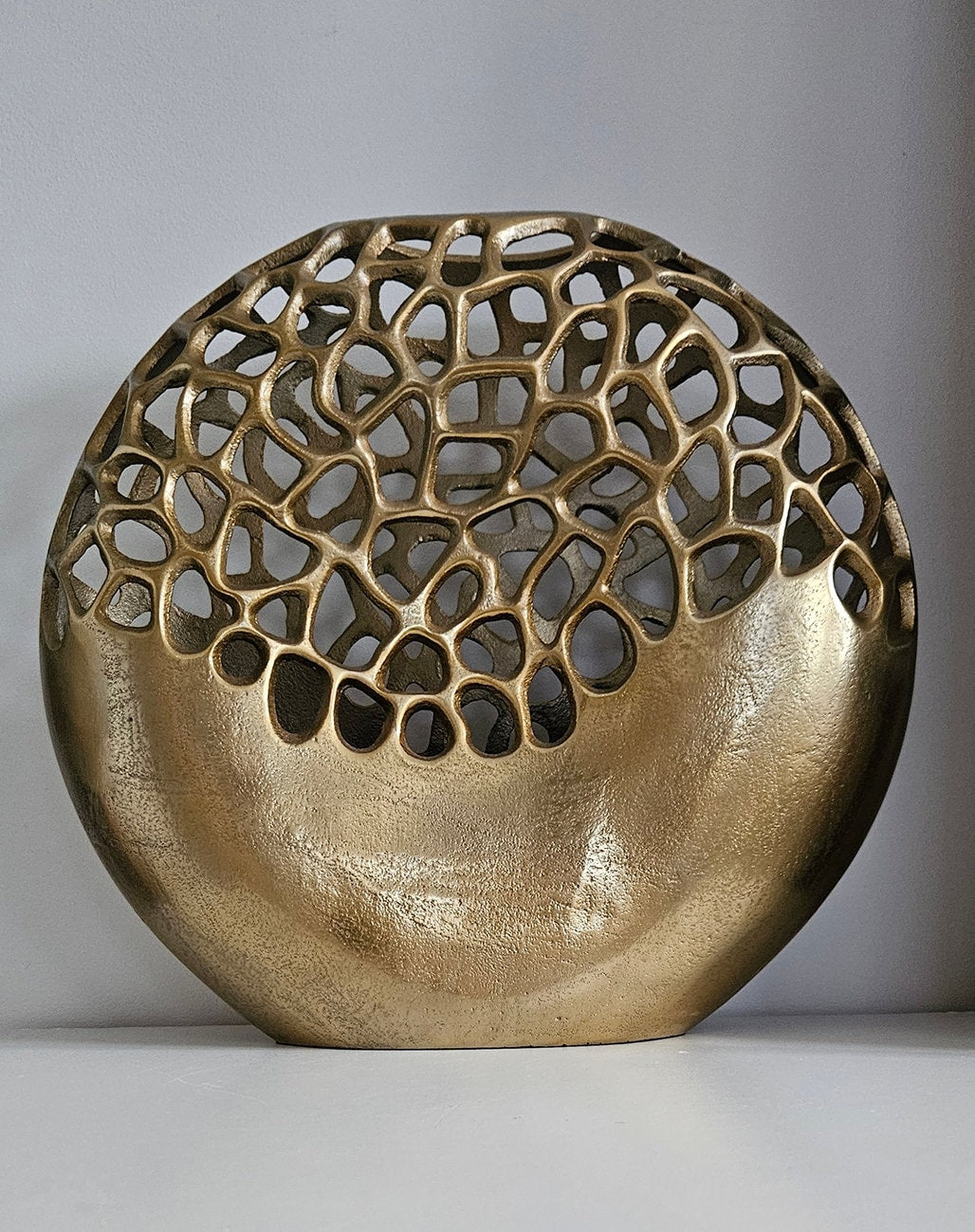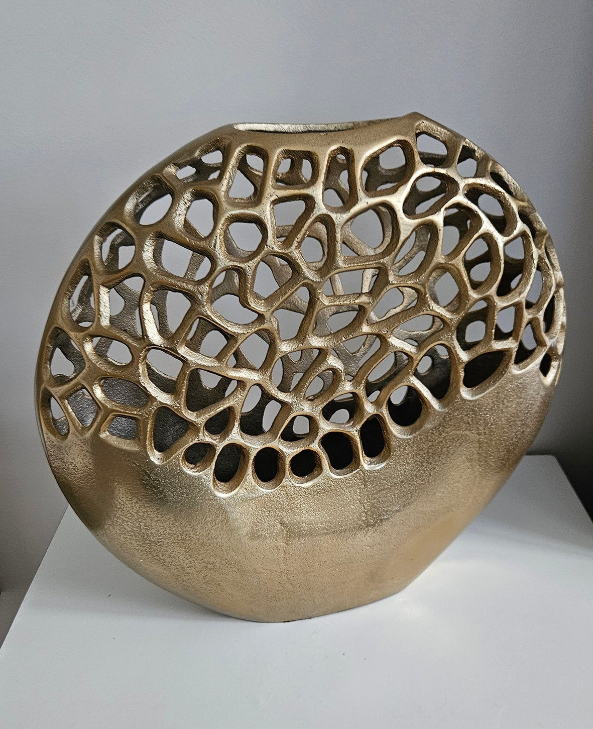 Whether displayed on its own or filled with artifical flowers, this metal vase effortlessly merges form and function. Elevate your decor with this statement piece, where craftsmanship meets aesthetic innovation.