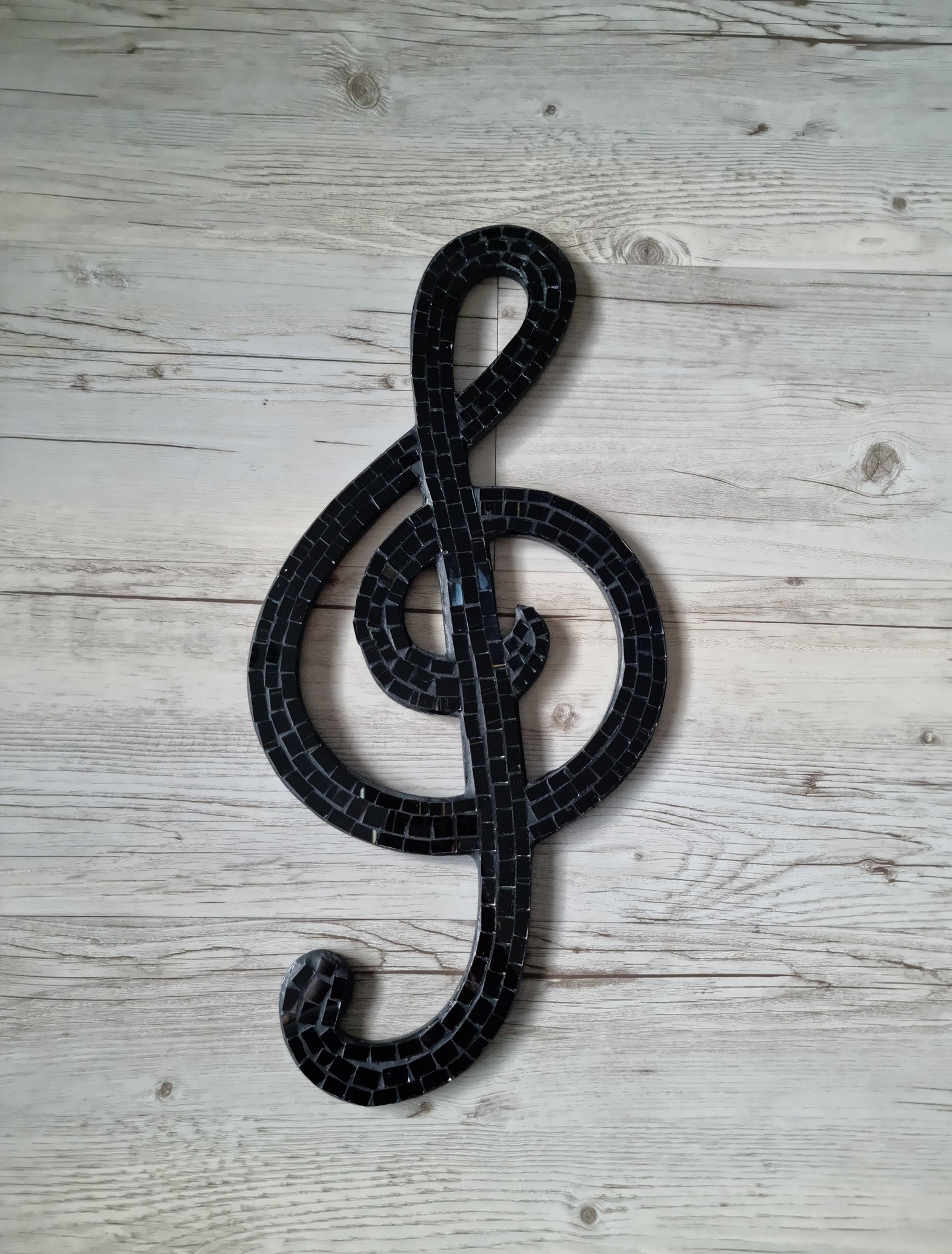 Large Handmade Mosaic Musical Treble Clef Shaped Wall Hanging