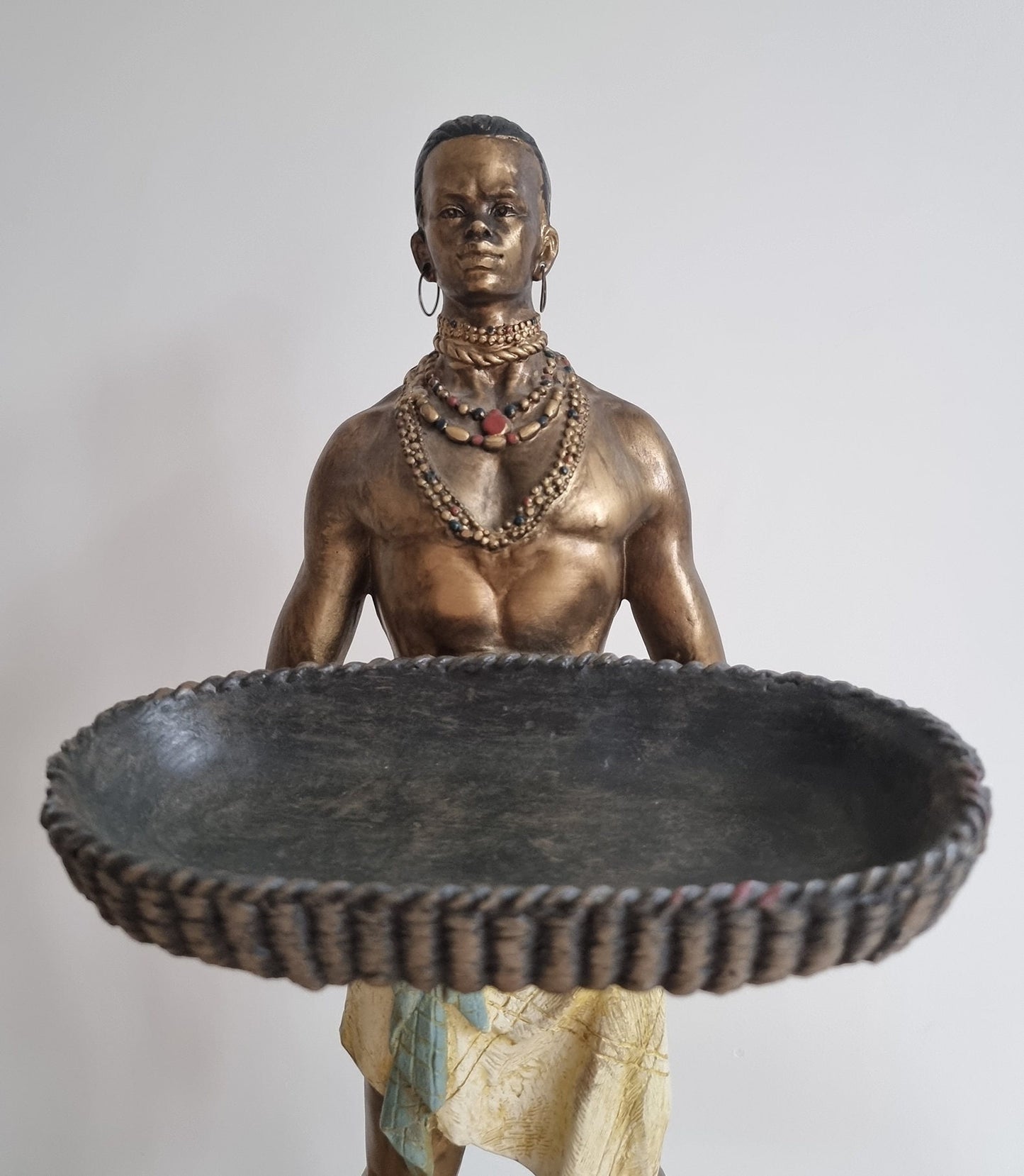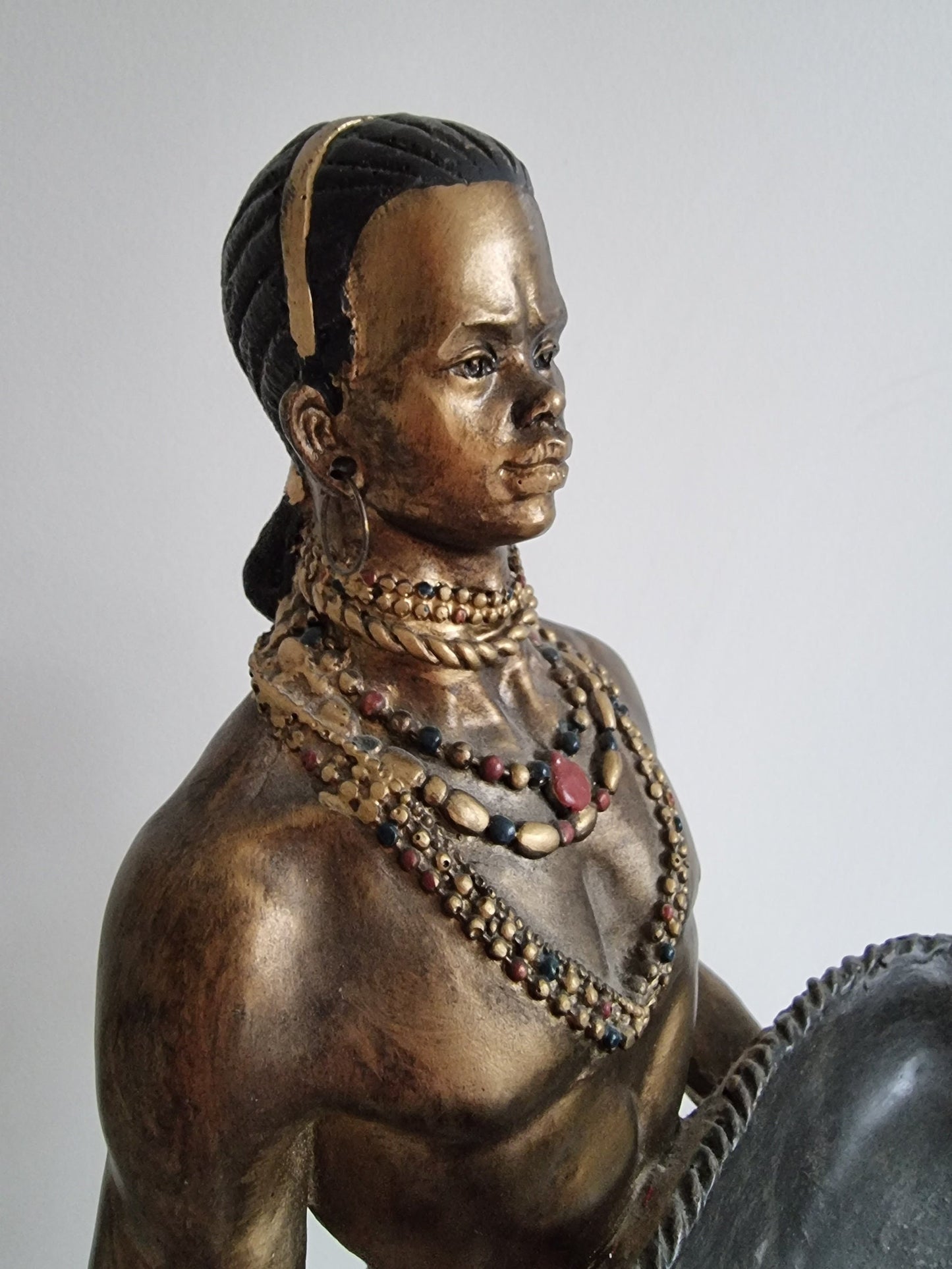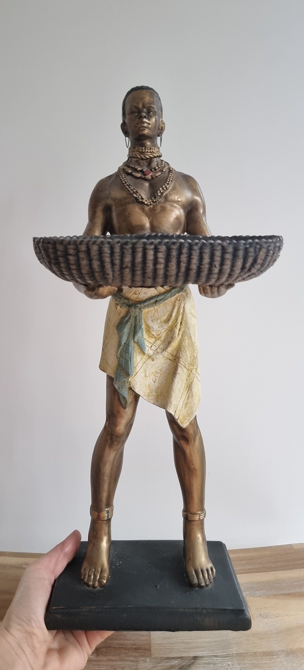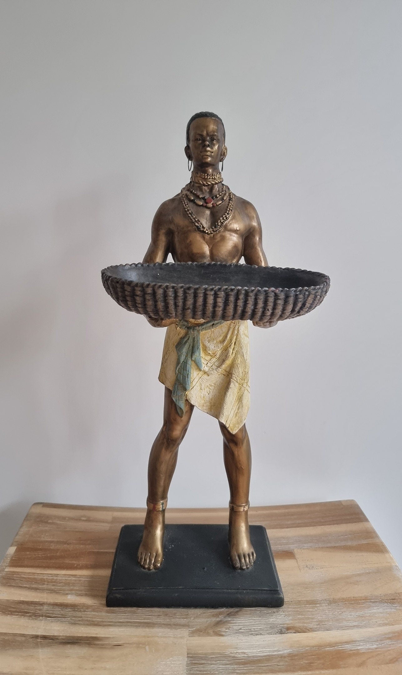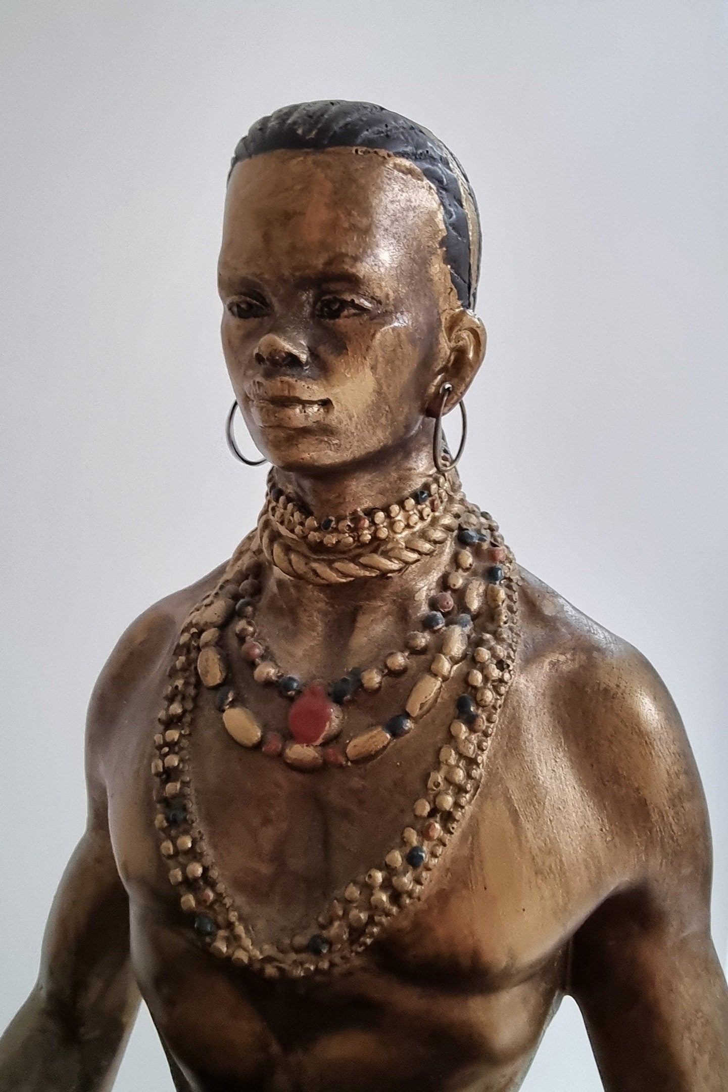 Large resin African man figurine statue in Bronze Finish - in beautiful condition with small imperfections to the base - please see photos for details.