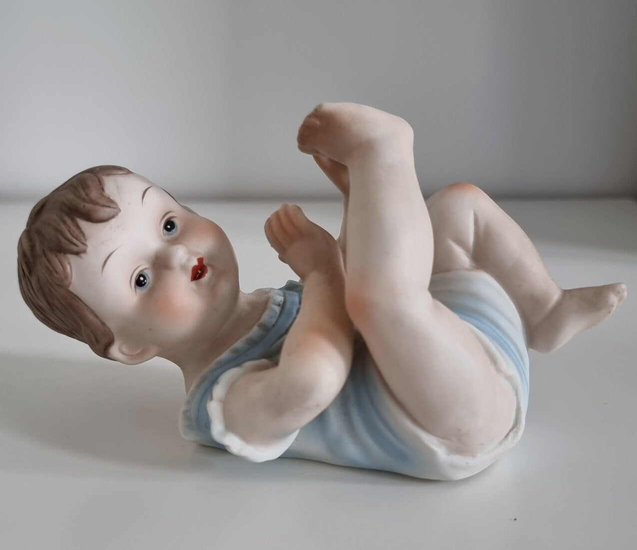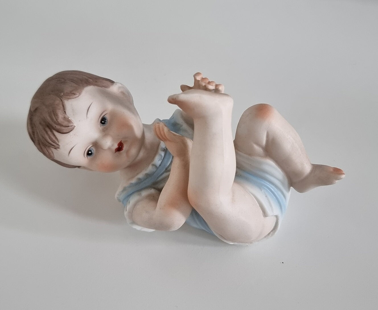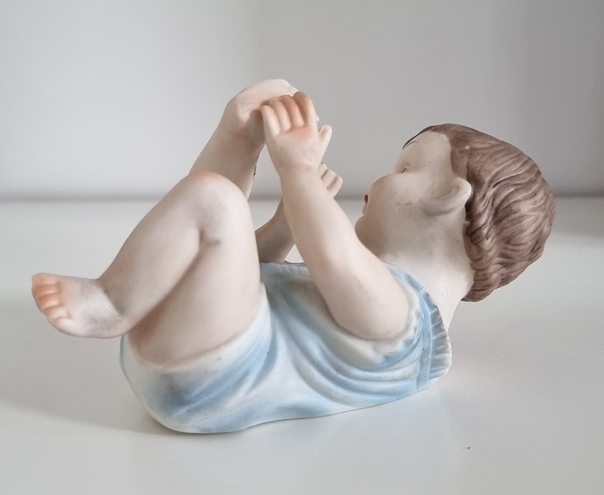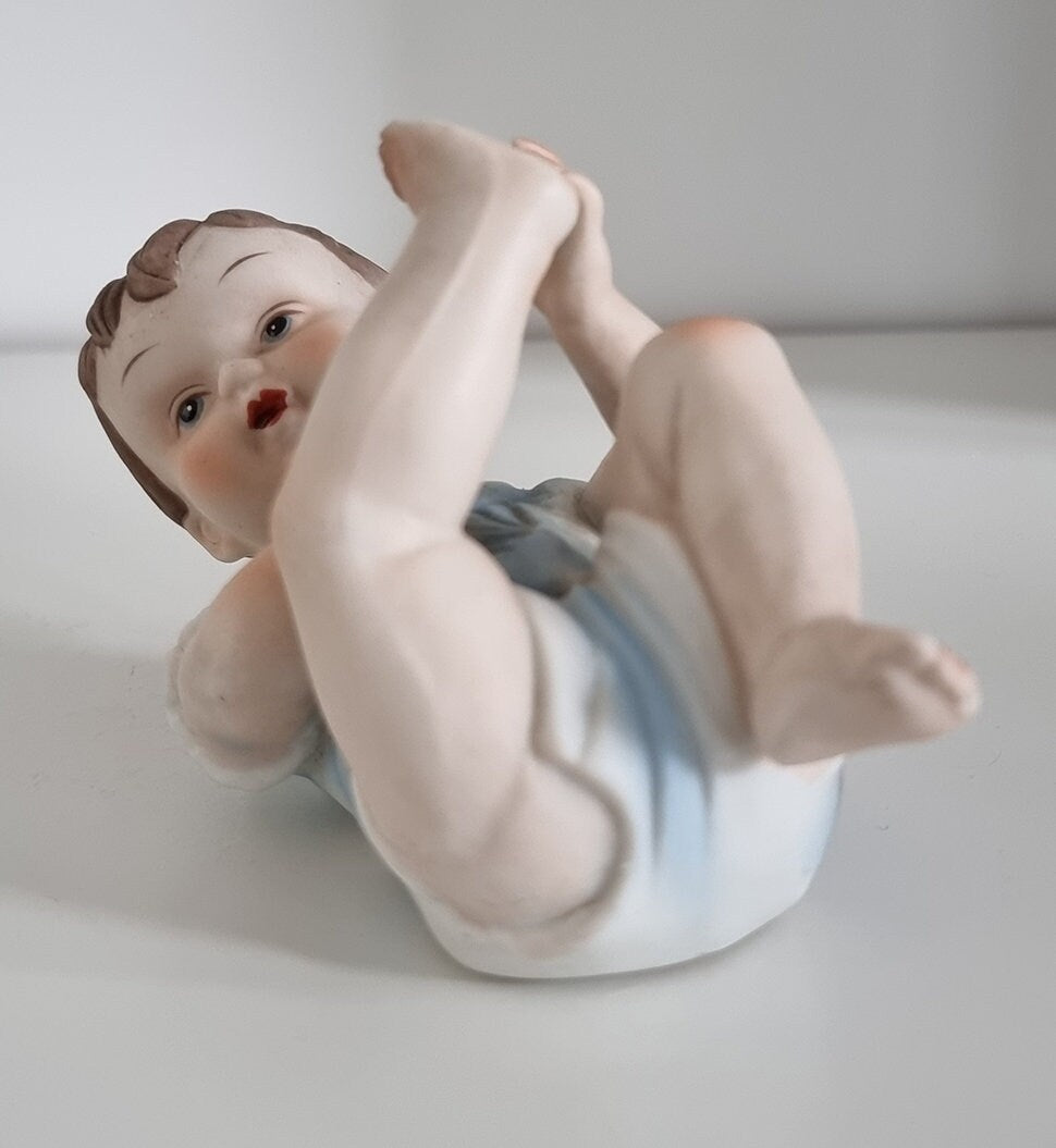 Lovely vintage bisque porcelain piano baby boy figurine in beautiful condition.