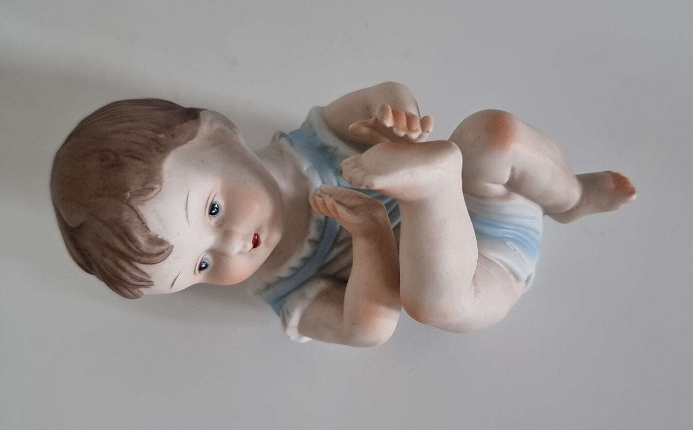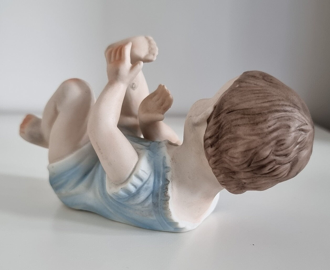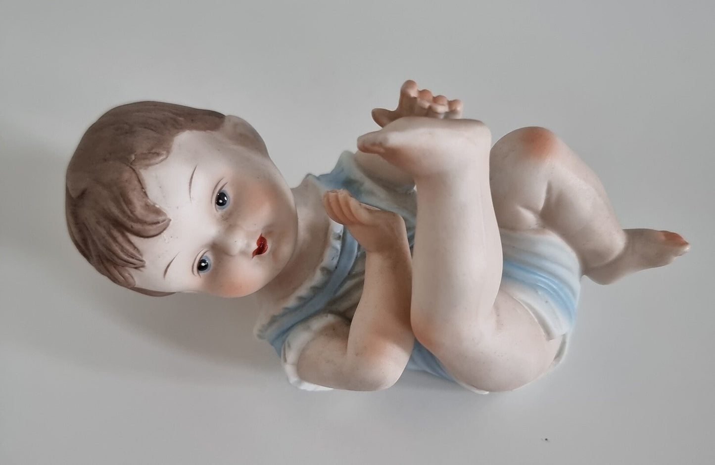 Lovely vintage bisque porcelain piano baby boy figurine in beautiful condition.
