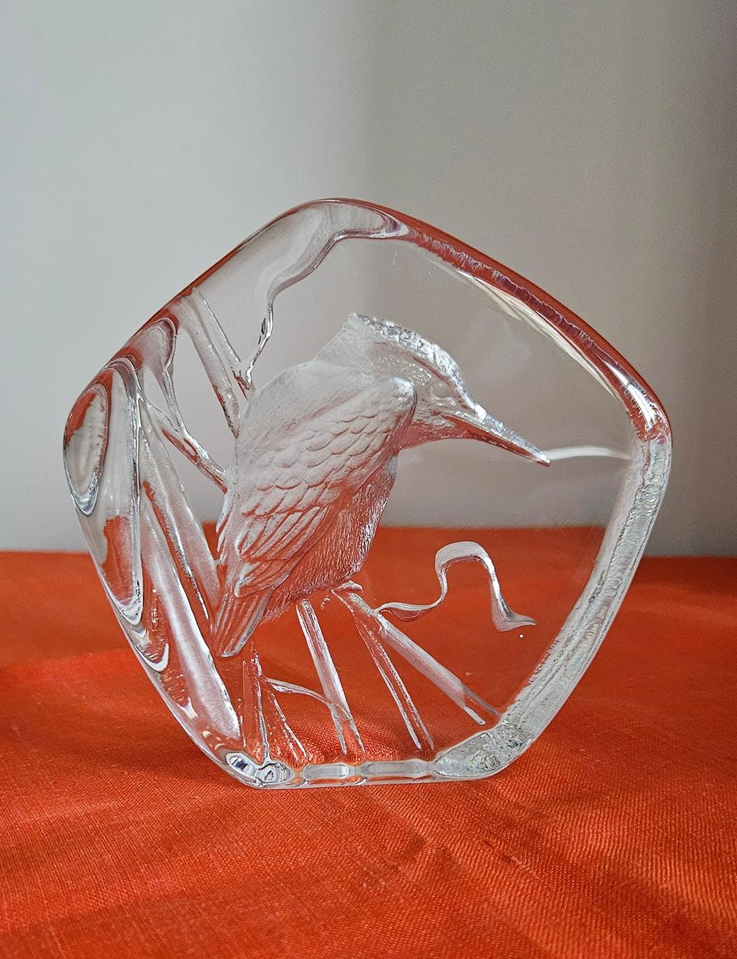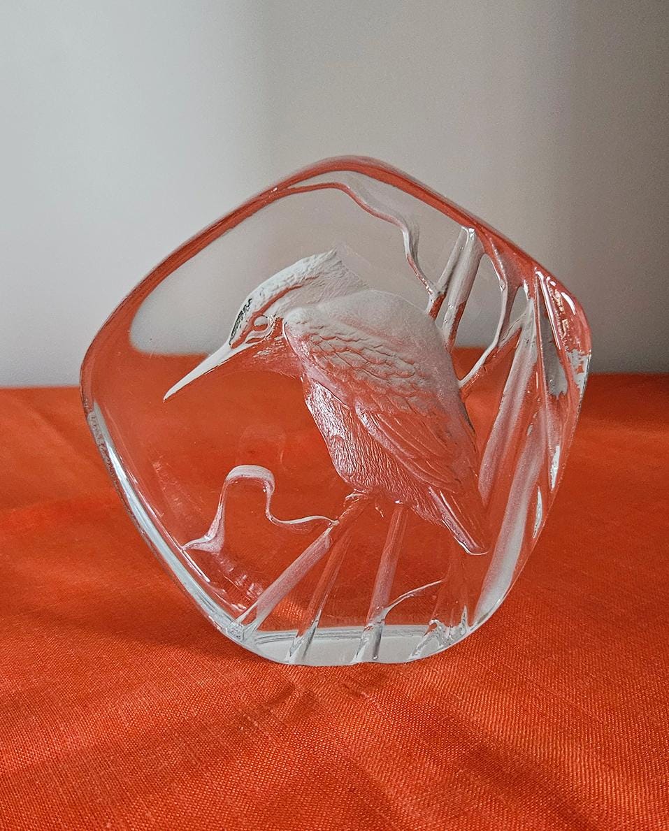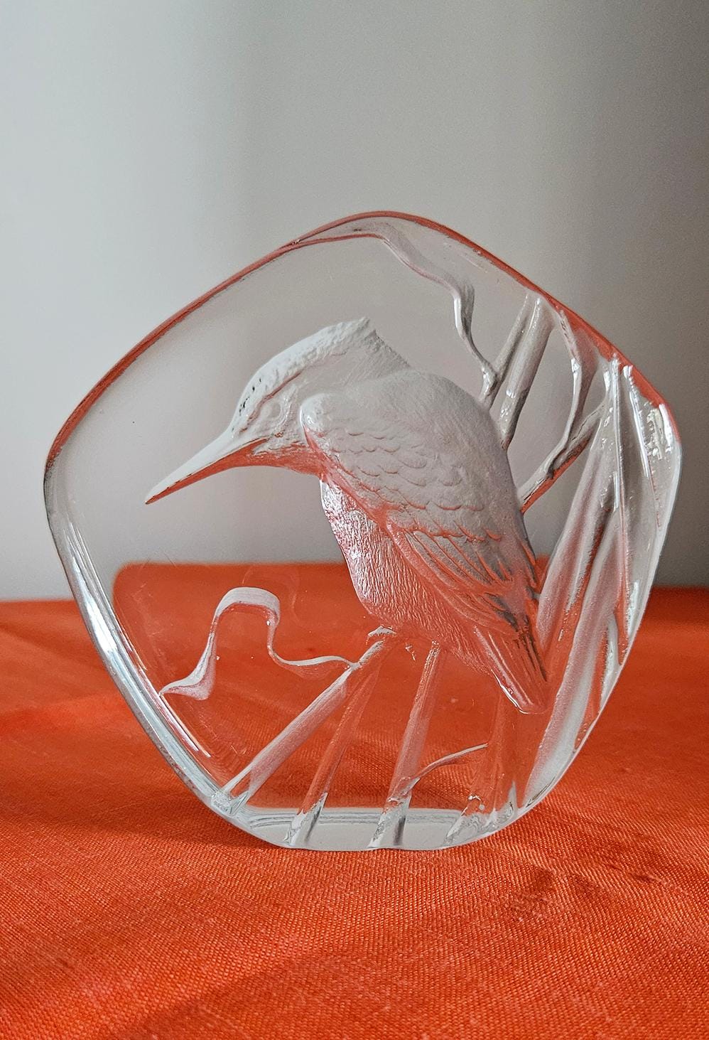 Mats Jonasson Glass Kingfisher Bird Paperweight - Signed
