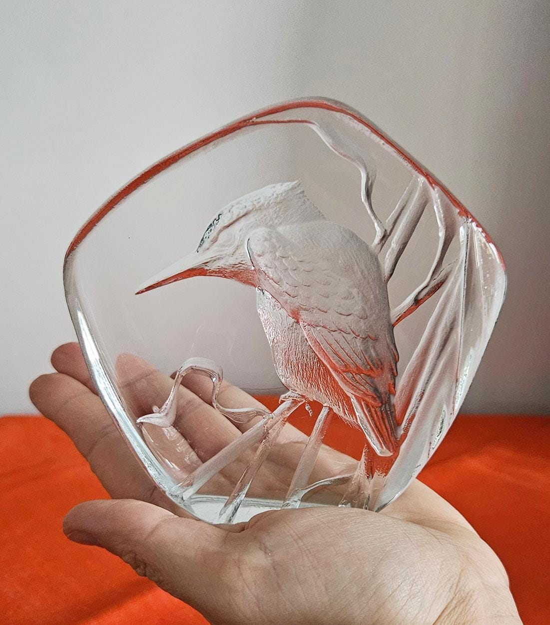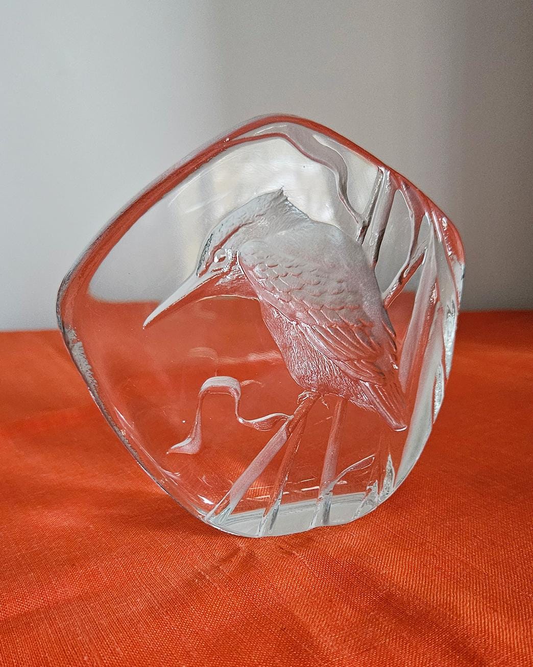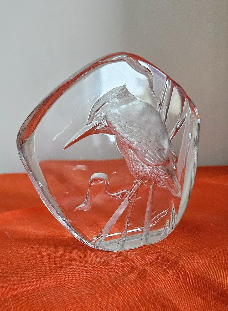 Mats Jonasson Glass Kingfisher Bird Paperweight - Signed