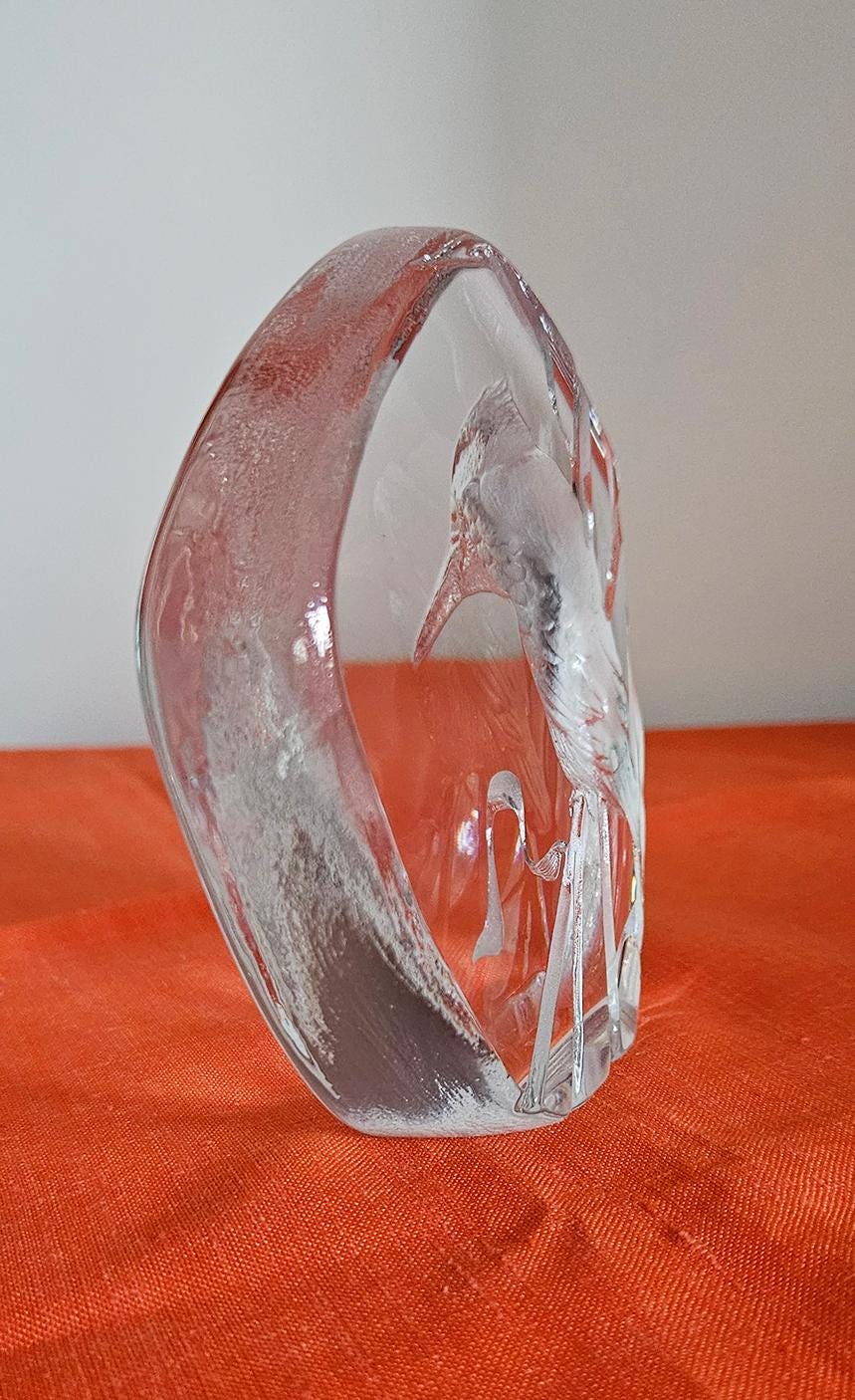 Add a touch of elegance to your home or office with this beautiful Mats Jonasson kingfisher bird paperweight. Expertly handcrafted in Sweden, this captivating piece showcases the renowned artistry of Mats Jonasson, famous for bringing wildlife scenes to life through exquisite crystal and glass creations.
