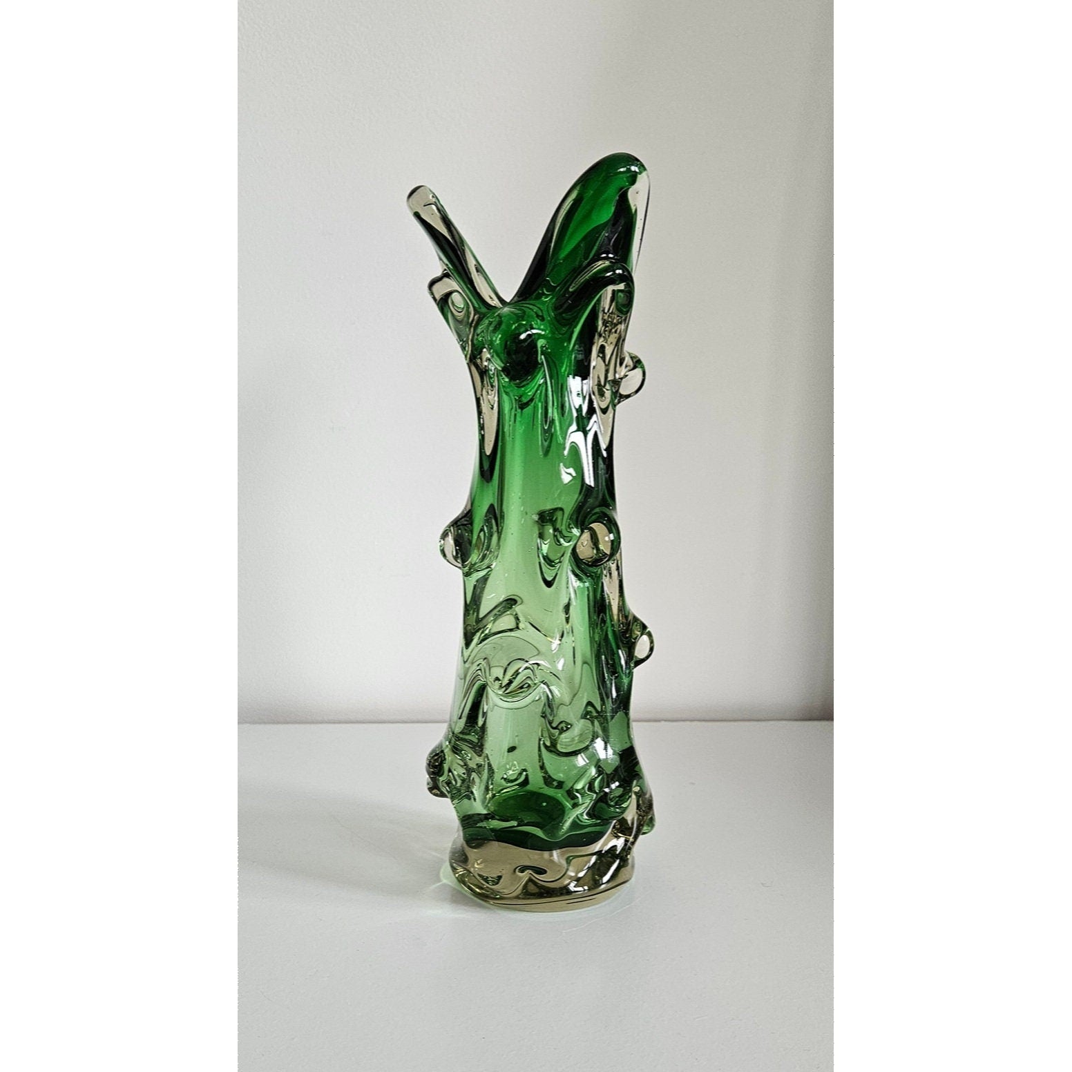 Mid century green knobbly design glass vase in beautiful condition with minor imperfection to the glass and has some age-related scratches to the base.