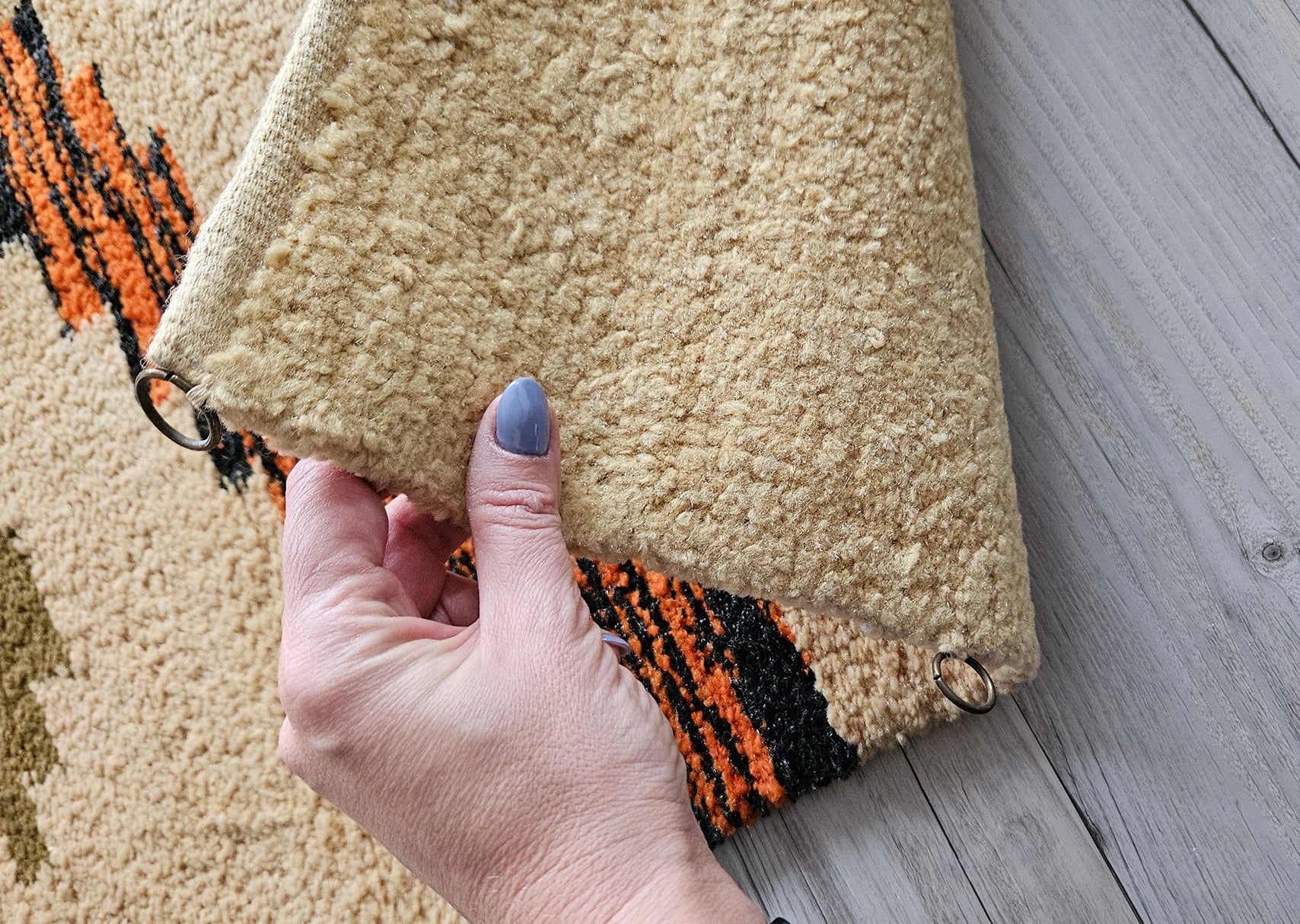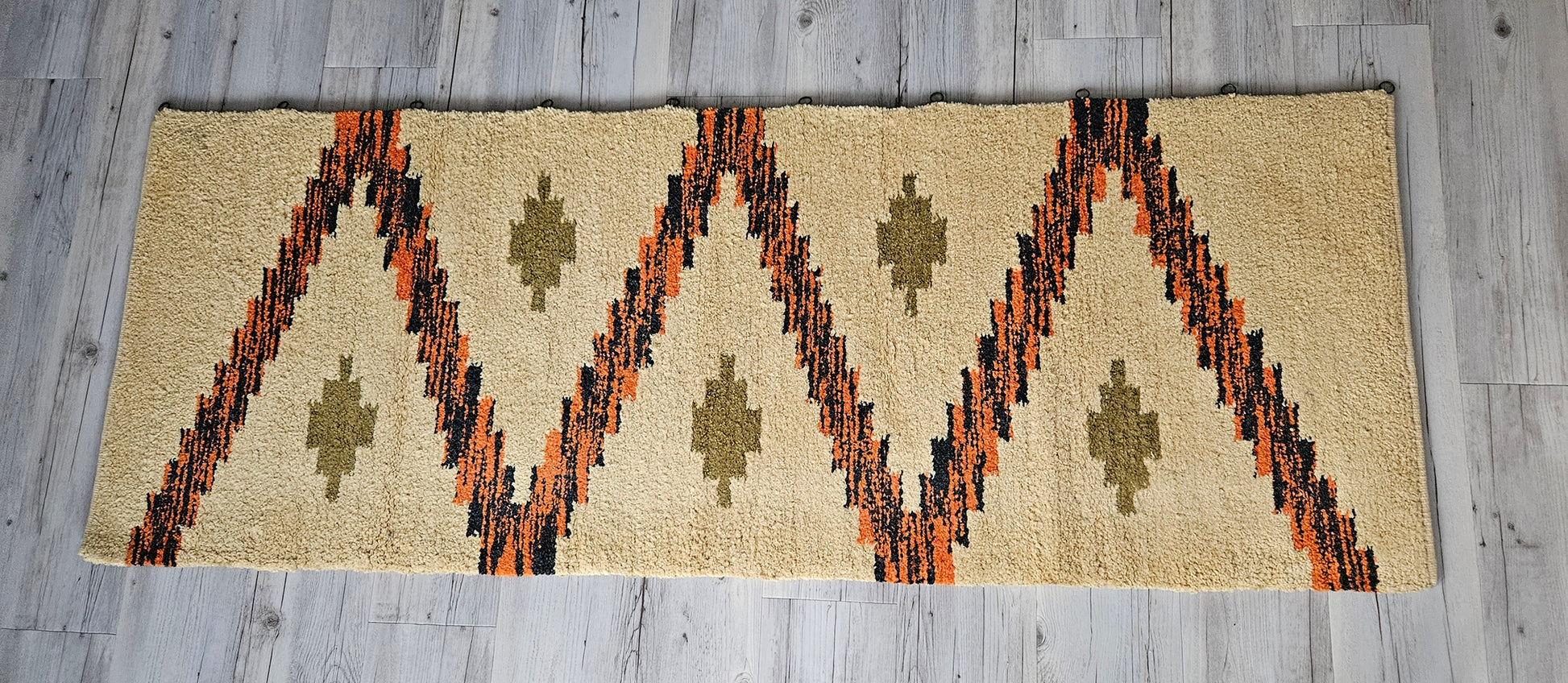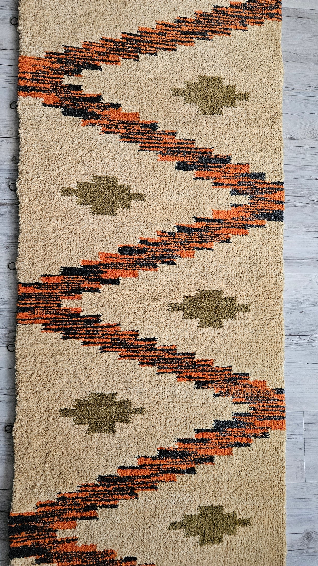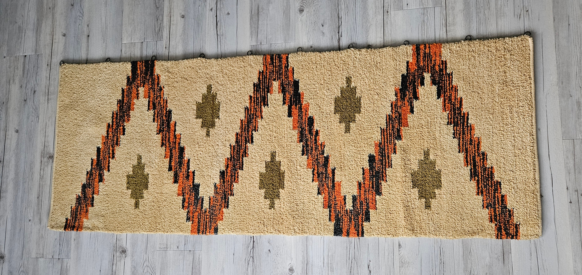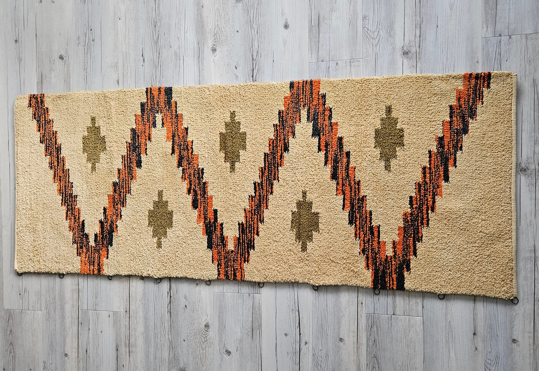 Add a touch of authentic mid-century charm to your space with this stunning Hungarian wall hanging tapestry/rug.