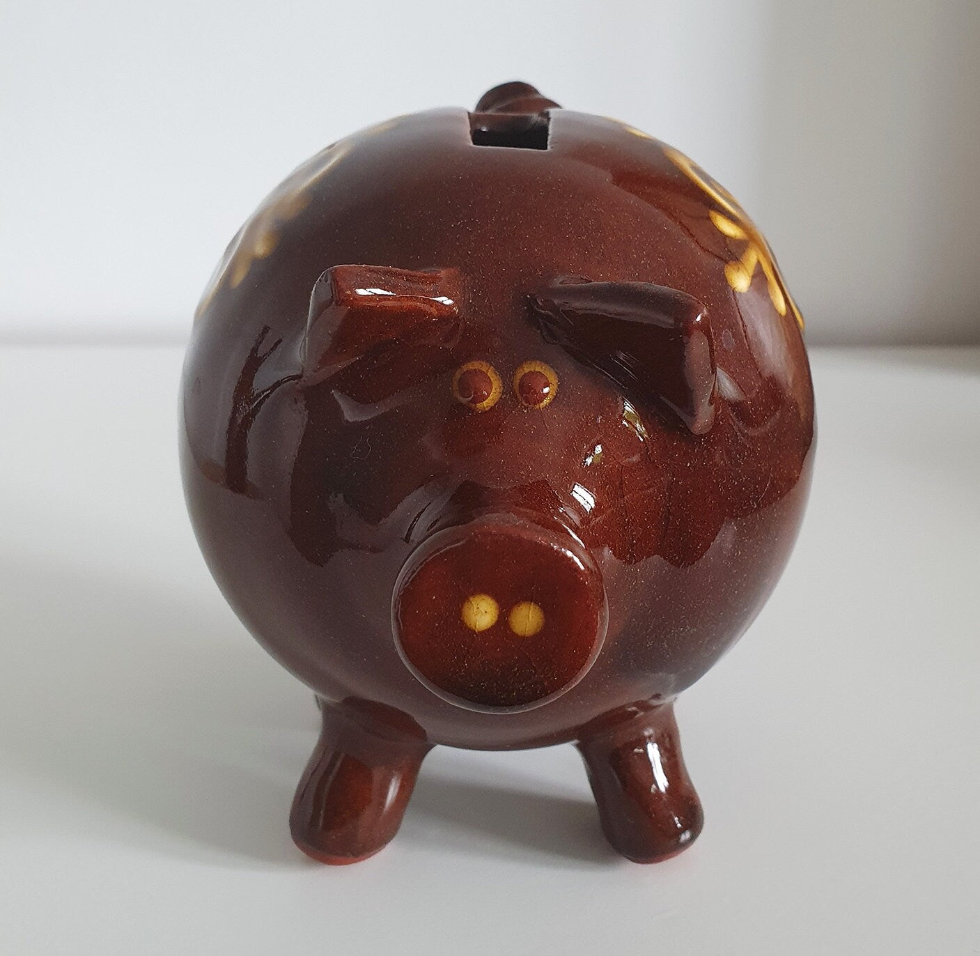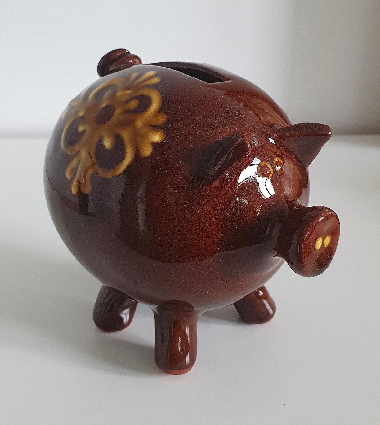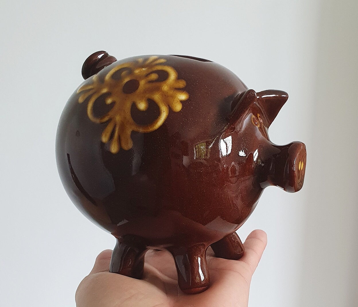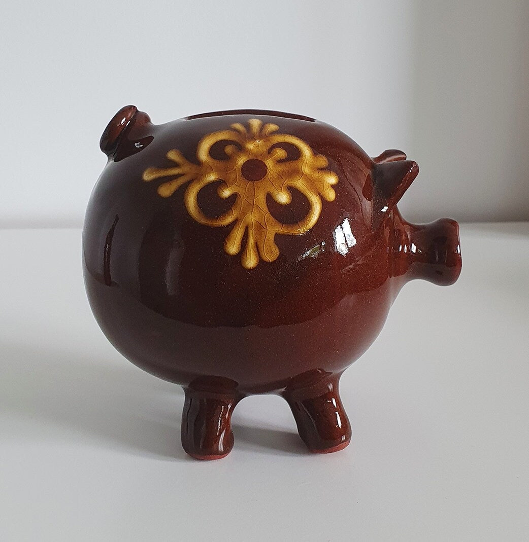 Mid century modern piggy bank/money box with stopper in beautiful condition.