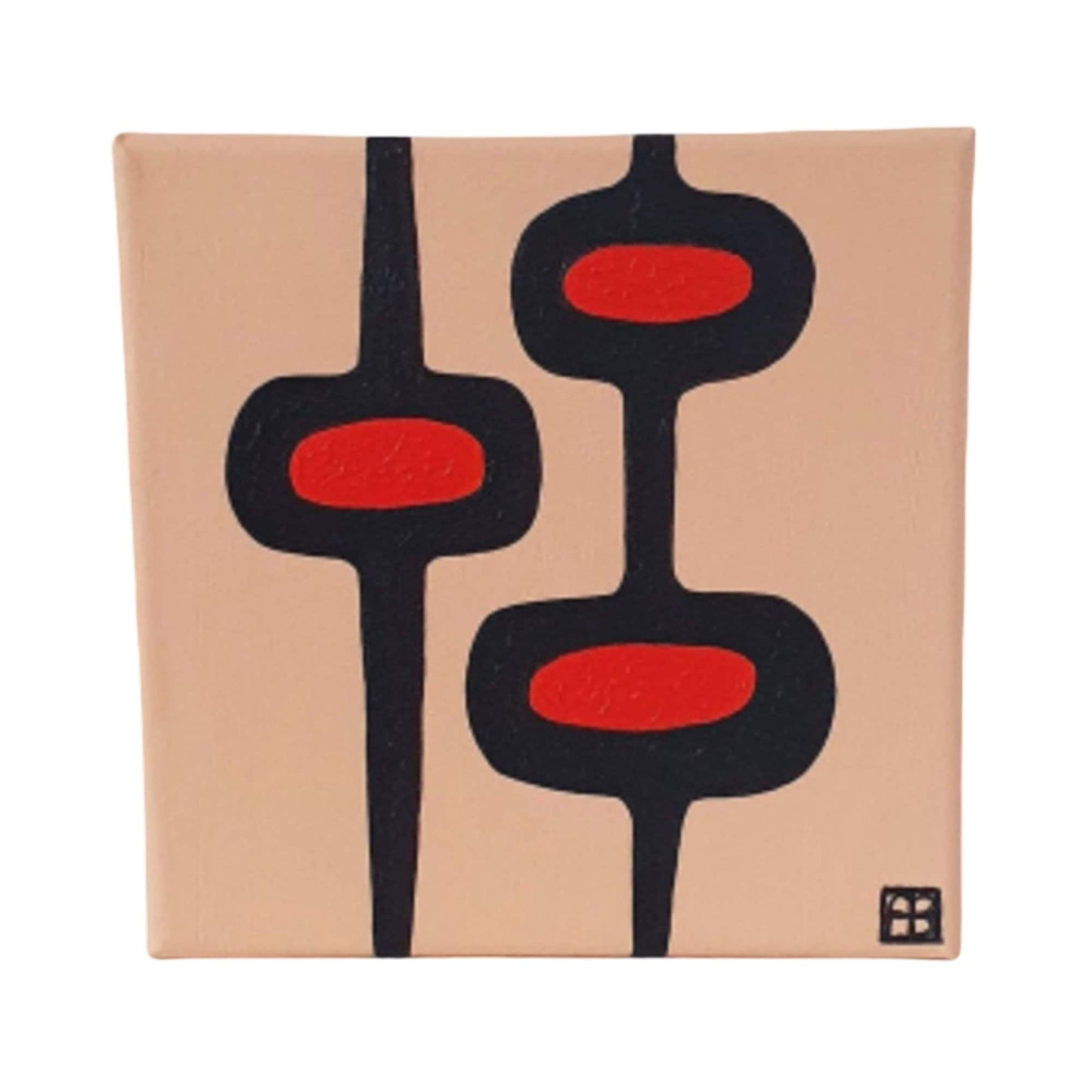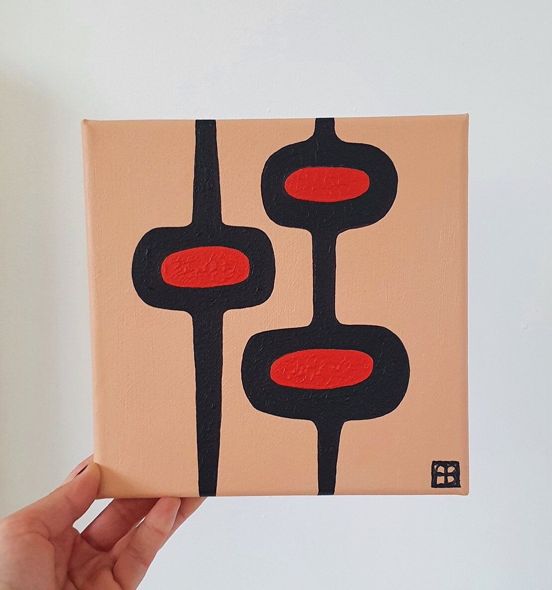 Mid Century Modern Retro Inspired Abstract Acrylic Painting, Original Space Age MCM Style Art
