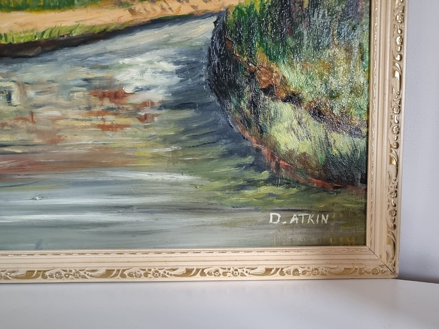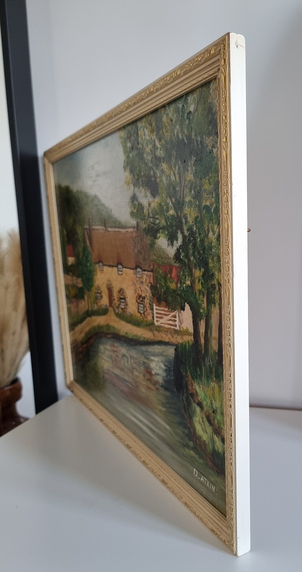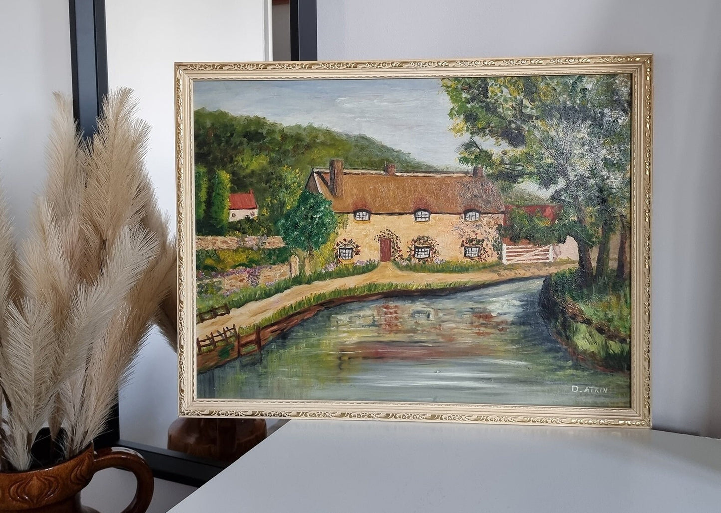 Introducing an exquisite vintage oil painting, 'Thornton-Le-Dale' landscape by the artist D. Atkin, capturing the beauty of the English countryside.